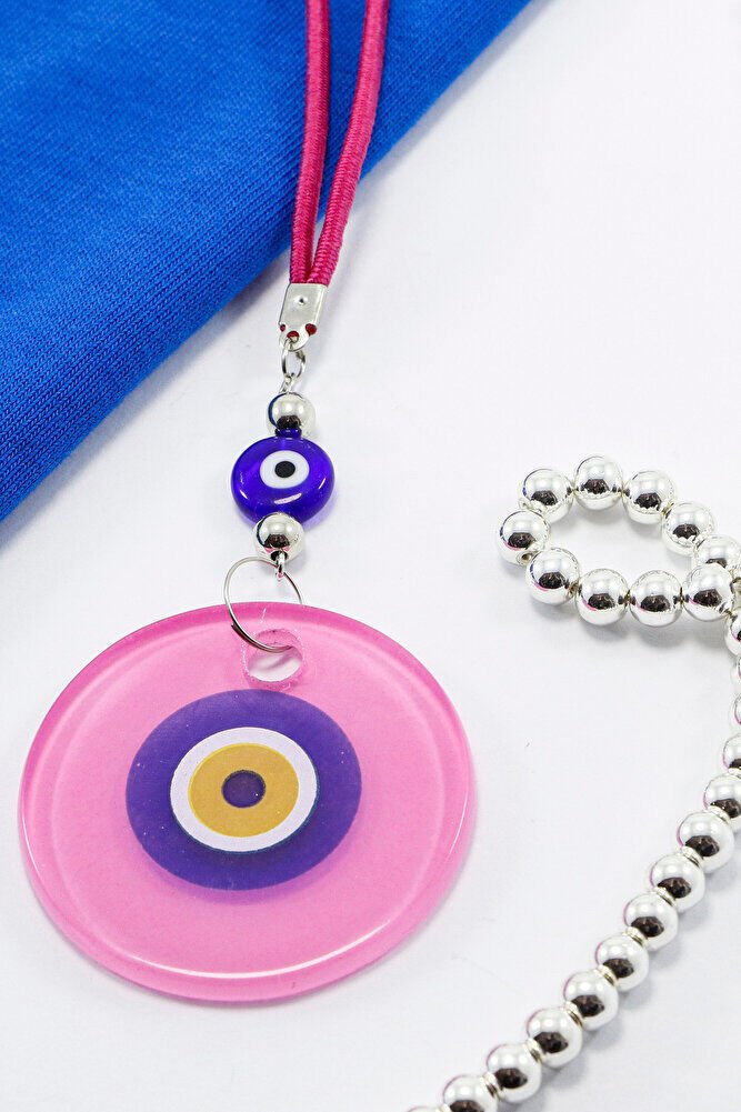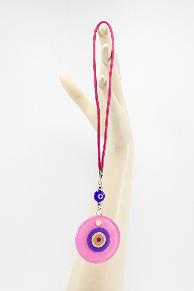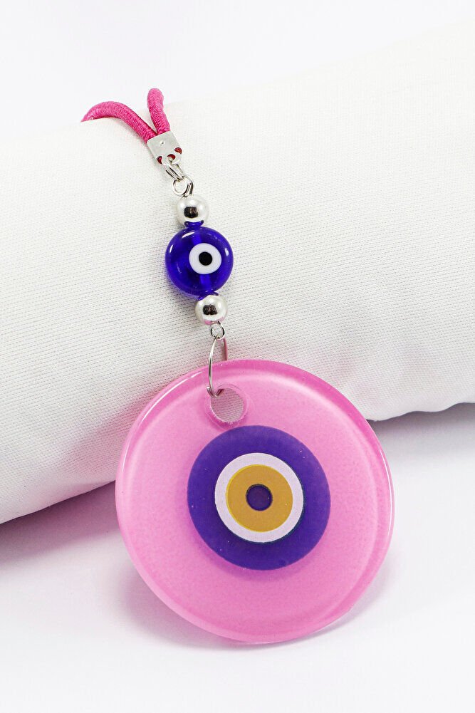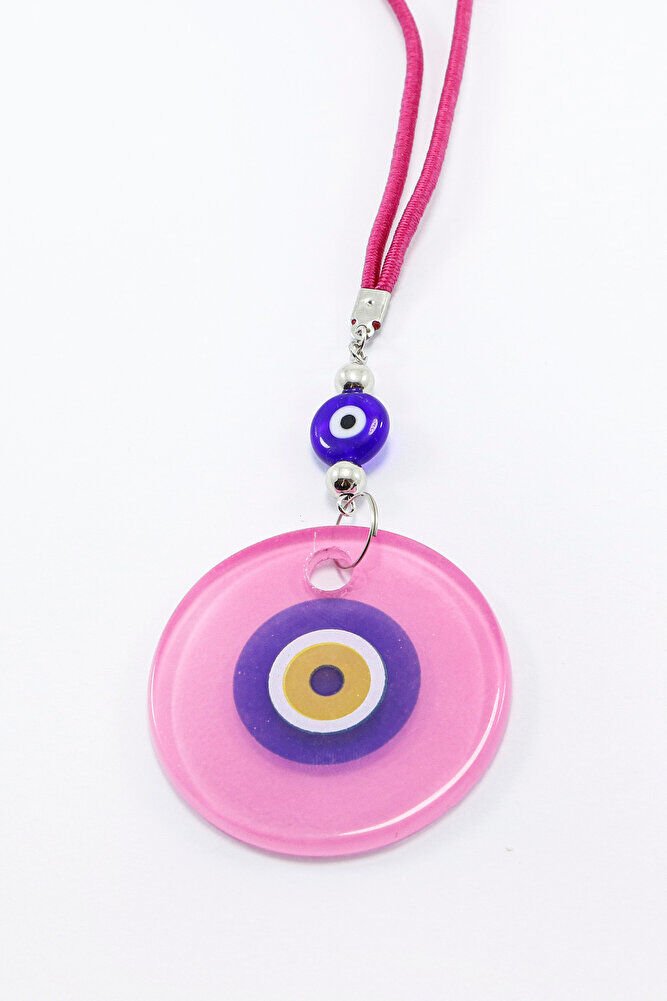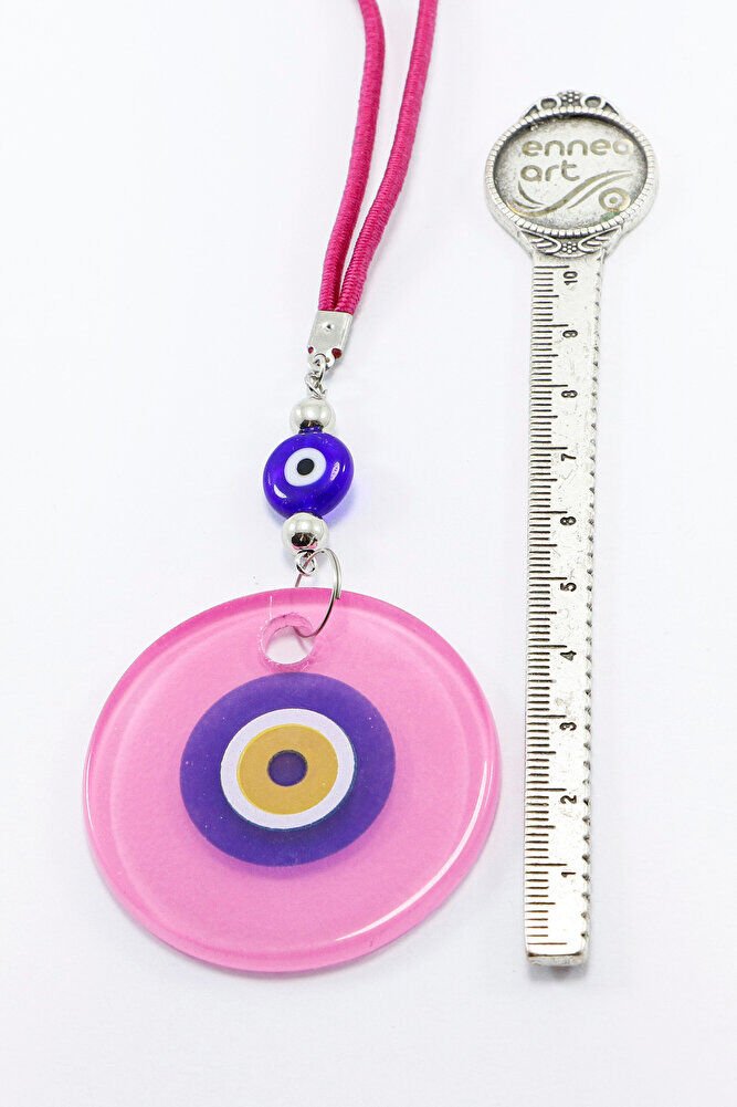 El Yapımı Yassı Cam Nazar Boncuklu Pembe Cam Nazarlı Araba Dikiz Ayna Süsü, Yeni Araba Hediyesi