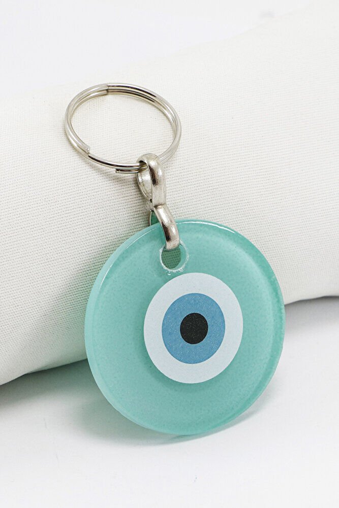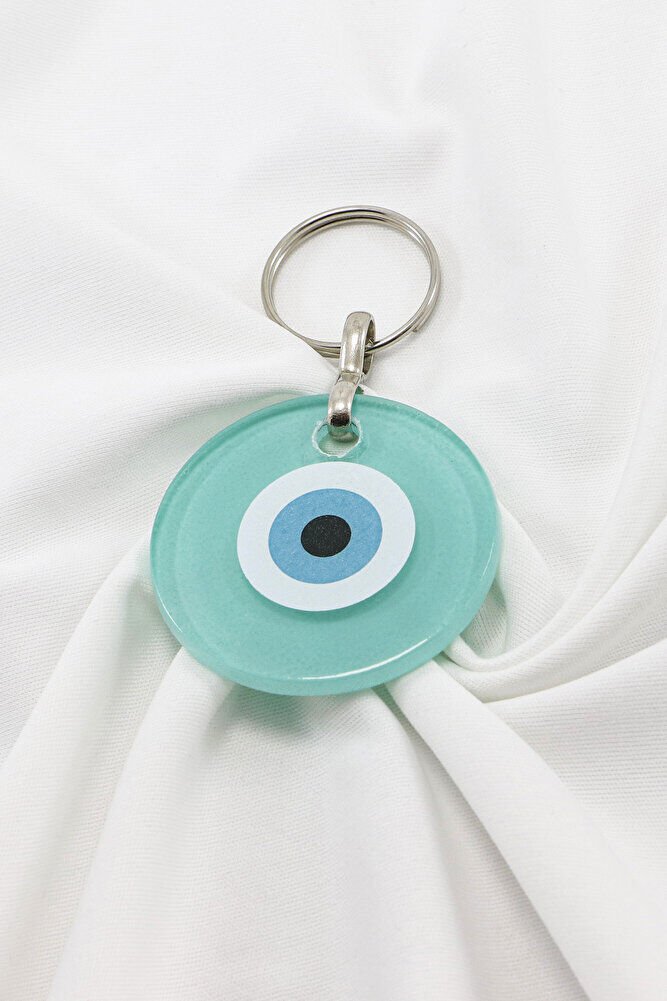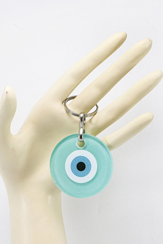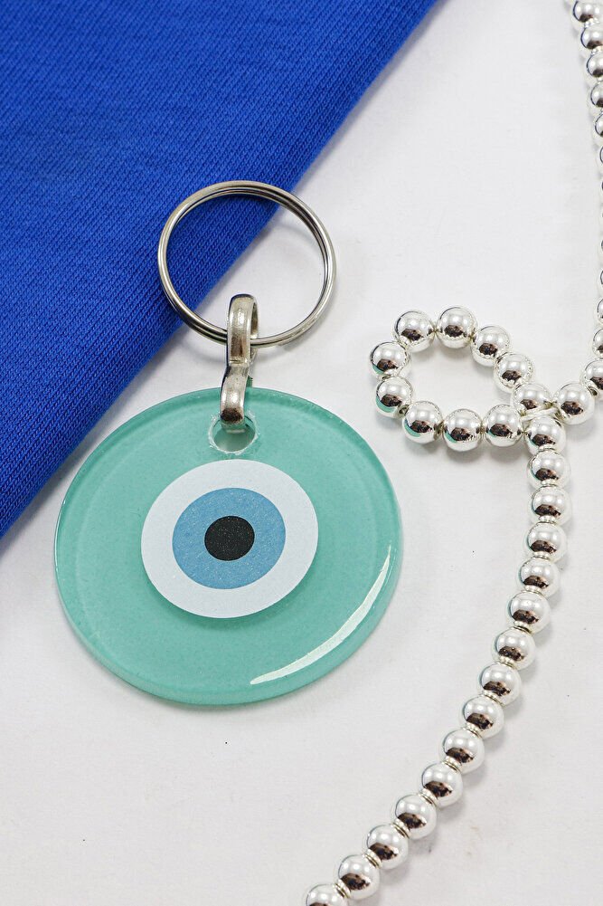 El Yapımı Yassı Cam Nazar Boncuklu Turkuaz Cam Nazarlı Anahtarlık, Hediyelik Çanta Süsü