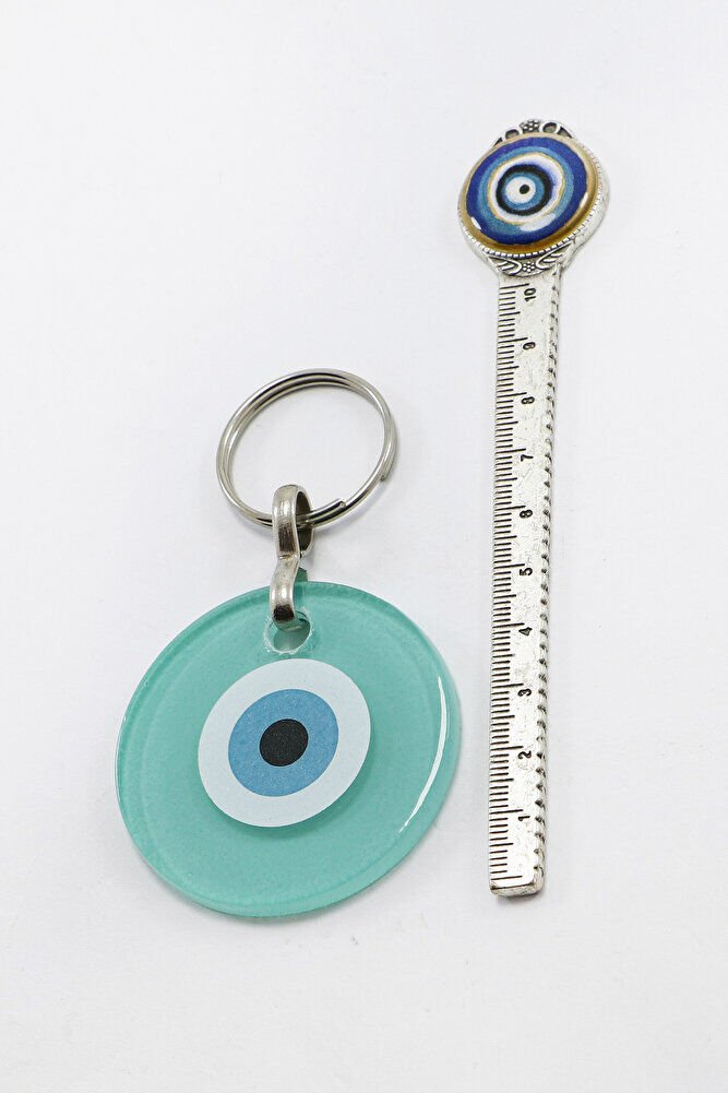 El yapımı yassı cam nazar boncuğu ve turkuaz cam nazar detaylarıyla hazırlanan bu anahtarlık, hem şık bir çanta süsü hem de anlamlı bir hediye alternatifidir.; Geleneksel nazar boncuğu motifi, kötü enerjilere ve nazara karşı koruyucu bir sembol olarak kabul edilir.; El işçiliğiyle hazırlanmış bu ürün, zarif detaylarıyla dikkat çekerken manevi bir anlam da taşır.; Sevdiklerinize hediye edebileceğiniz özel ve anlamlı bir aksesuardır.; TÜM ÜRÜN FOTOĞRAFLARI ENNEA ART FİRMASINA AİTTİR VE ÖZGÜN ÇALIŞMALARDIR.; İZİNSİZ KULLANIM, KOPYALAMA VEYA DAĞITIM KESİNLİKLE YASAKTIR.; GEREKLİ DURUMLARDA YASAL İŞLEM BAŞLATILACAKTIR.;
