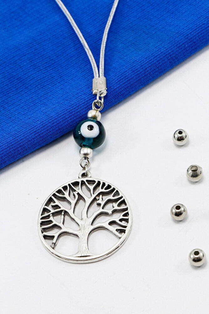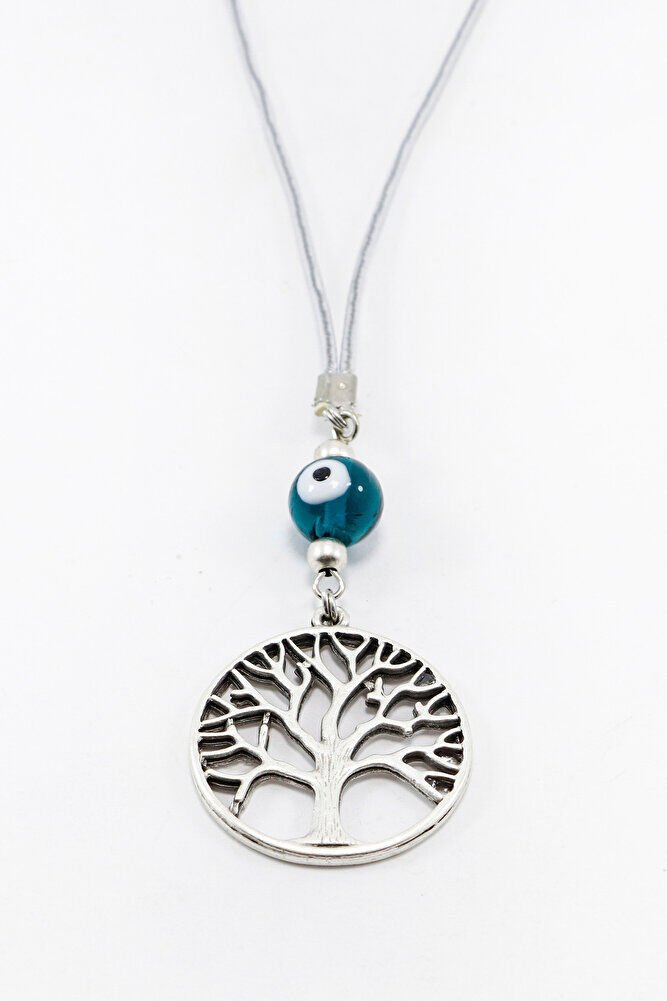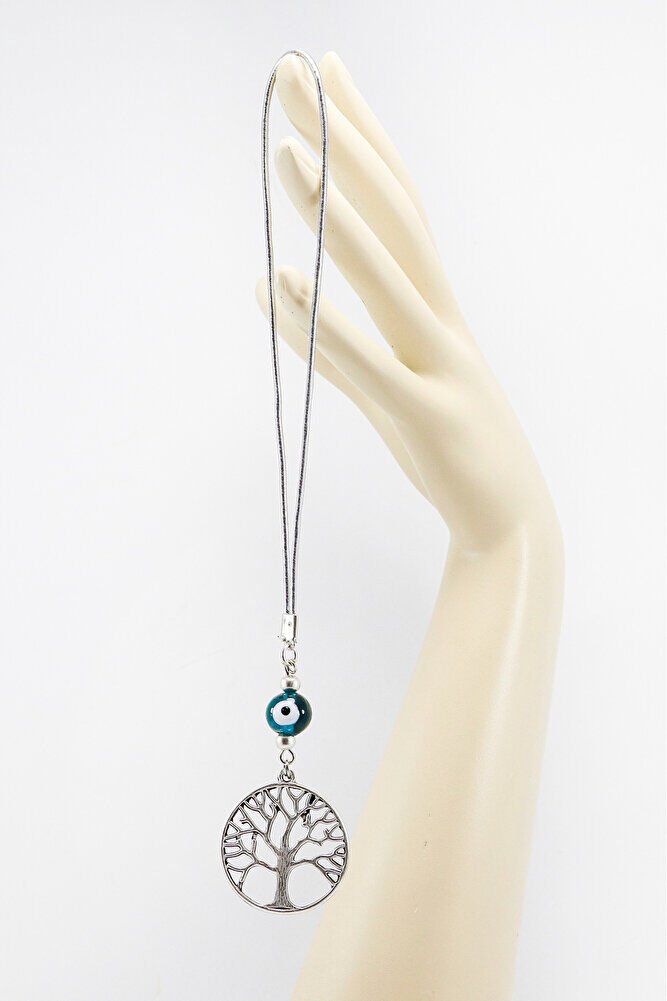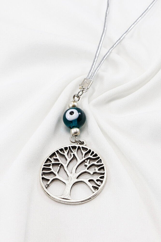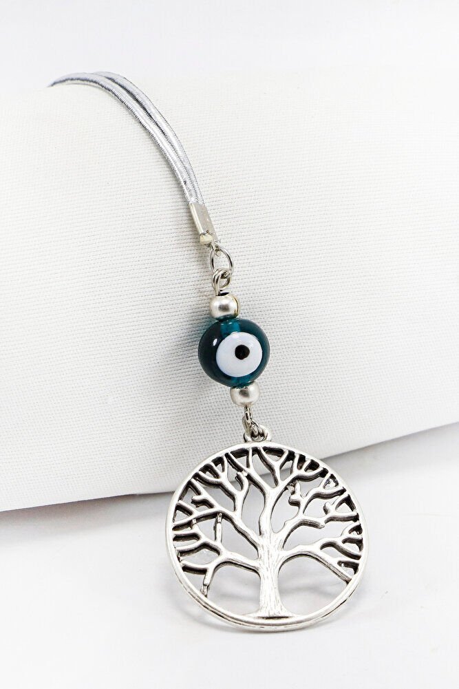 El Yapımı Zümrüt Yeşili Cam Nazar Boncuklu Metal Hayat Ağacı Araba Dikiz Ayna Süsü
