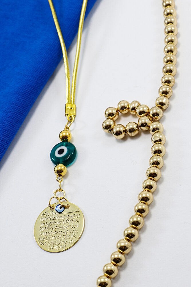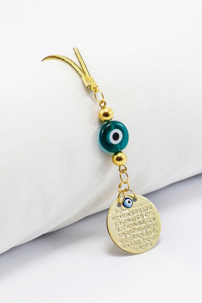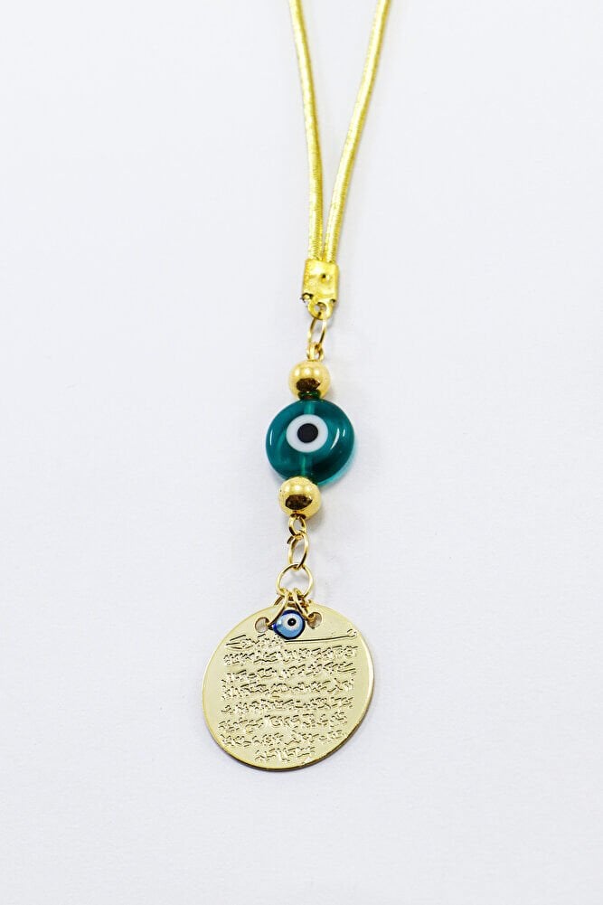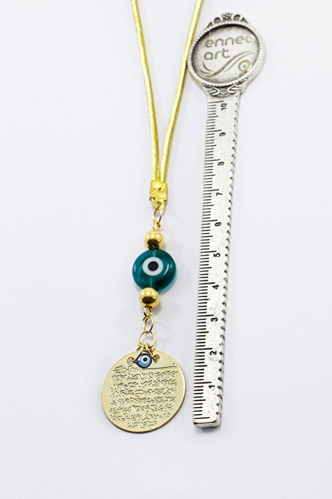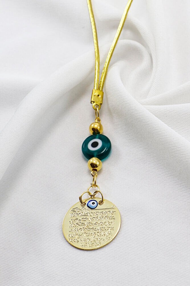 El Yapımı Zümrüt Yeşili Nazarlı Metal Ayetel Kürsi Dualı Dikiz Ayna Süsü, Yeni Araba Hediyesi
