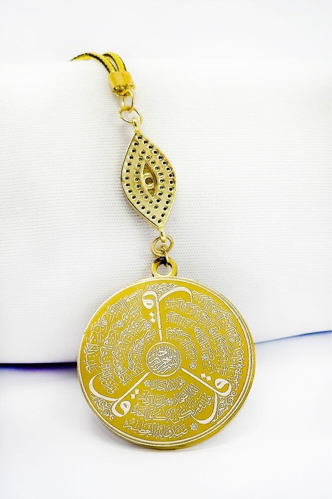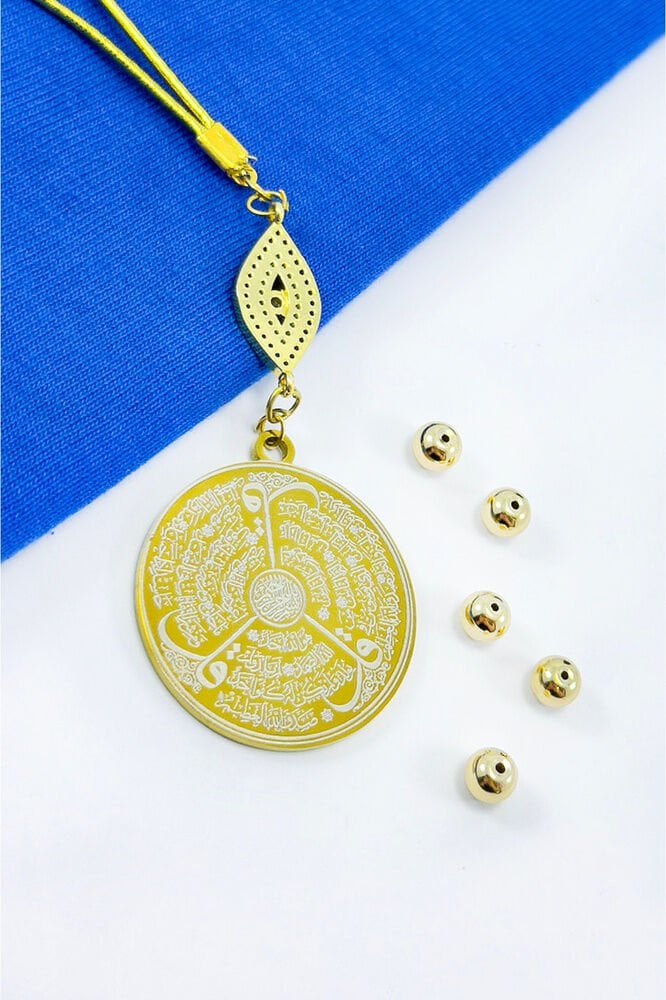 TÜM ÜRÜN FOTOGRAFLARI ENNEA ART FİRMASINA AİTTİR VE ÖZGÜN ÇALIŞMALARDIR.; İZİNSİZ KULLANIM, KOPYALAMA VEYA DAĞITIM KESİNLİKLE YASAKTIR.; GEREKLİ DURUMLARDA YASAL İŞLEM BAŞLATILACAKTIR.; İpi lastiklidir ve her model araca rahatlıkla takılabilmektedir.; Ürün paslanmaz çeliktir.; Dualar lazer kazıma tekniği ile kalıcı bir şekilde kazınmaktadır.; Ürün el yapımıdır el yapımı olduğu için ufak farklılık ve düzensizlikler olasıdır.; İp elastiktir.; Elastik olduğu için her modele rahatlıkla takılabilmektedir.; Plaka altın renkli paslanmaz çeliktir.; Çelik plaka 3,5 cm ölçülerindedir.; Plaka çift taraflıdır.; Bir yüzünde Ayetel Kürsi diğer yüzünde ise Felak Nas İhlas bulunmaktadır.; Felak, Nas ve İhlas sureleri, İslam inancında korunma ve manevi güç sağlamak için okunan önemli dualardır.; İnanılır kabul edilir ki, Felak ve Nas sureleri, özellikle kötü gözlerden, nazardan ve şeytani etkilerden korunmak için okunur.; Felak suresi, karanlık güçlere karşı koruma sağlarken, Nas suresi de olumsuz düşünceler ve zararlı enerjilerden korunmayı sağlar.; İhlas suresi ise, Allah ın birliğini ve sınırsız gücünü ifade eder, bu sureye inanılır ki, kişi manevi huzur ve Allah ın koruması altında olur.; Bu sureler, sıkça güven ve huzur arayışında olanlar için okunur ve ruhsal dengeyi sağlamak isteyenlere büyük fayda sağladığına inanılır.; Ayetel Kürsi, İslam inancında en güçlü ve koruyucu dualardan biri olarak kabul edilir.; Ayetel Kürsi, Allah ın büyüklüğünü ve egemenliğini ifade eden bir ayet olup, koruma ve manevi güç sağlamak amacıyla sıkça okunur.; Bu ayet, göklerde ve yerin her şeyinin Allah a ait olduğunu vurgular ve şeytani etkilerden korunma sağlar.; Özellikle gece yatmadan önce okunmasının, güvende olma, zararlı enerjilerden korunma ve ruhsal huzur sağlama açısından büyük fayda verdiğine inanılır.; Aynı zamanda, Allah ın her şeyi bildiği ve her şeyin O na bağlı olduğu inancı ile kişiye manevi rahatlık ve güç verir.;