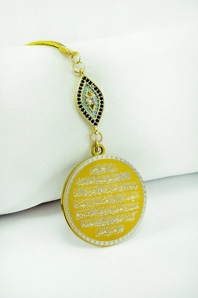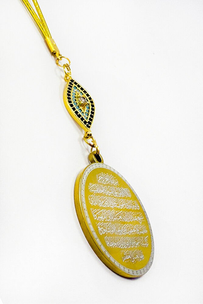 Elips Zirkon Taşlı Paslanmaz Çelik Ayetel Kürsi Felak Nas İhlas Araba Dikiz Ayna Süsü