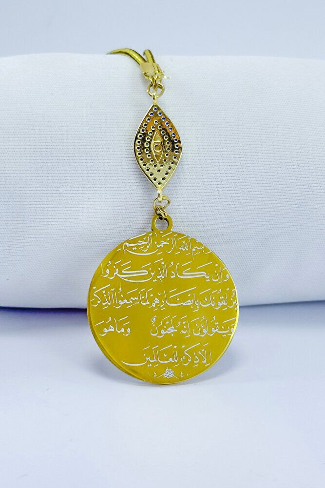 Elips Zirkon Taşlı Paslanmaz Çelik Ayetel Kürsi Nazar Ayeti Araba Dikiz Ayna Süsü
