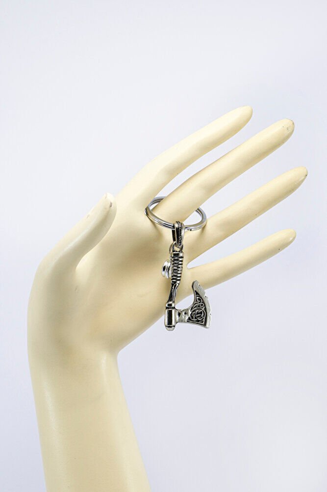 Çift taraflı cam nazar boncuğu ile tasarlanan metal balta figürlü erkek anahtarlığı, güçlü ve karakterli duruşuyla öne çıkan özgün bir aksesuardır. El yapımı cam nazar boncuğu, metal balta formu ile bir araya gelerek ürüne hem anlamlı hem de dikkat çekici bir görünüm kazandırır. Maskülen tasarımı sayesinde günlük kullanımda şık bir tamamlayıcı olarak tercih edilebilir.