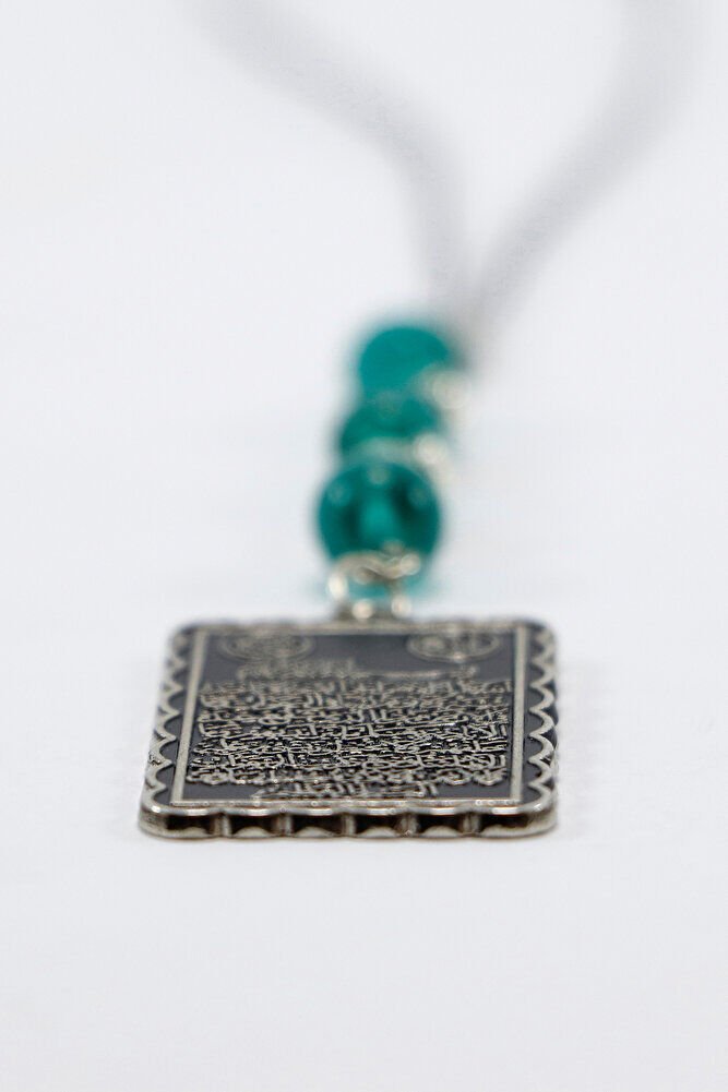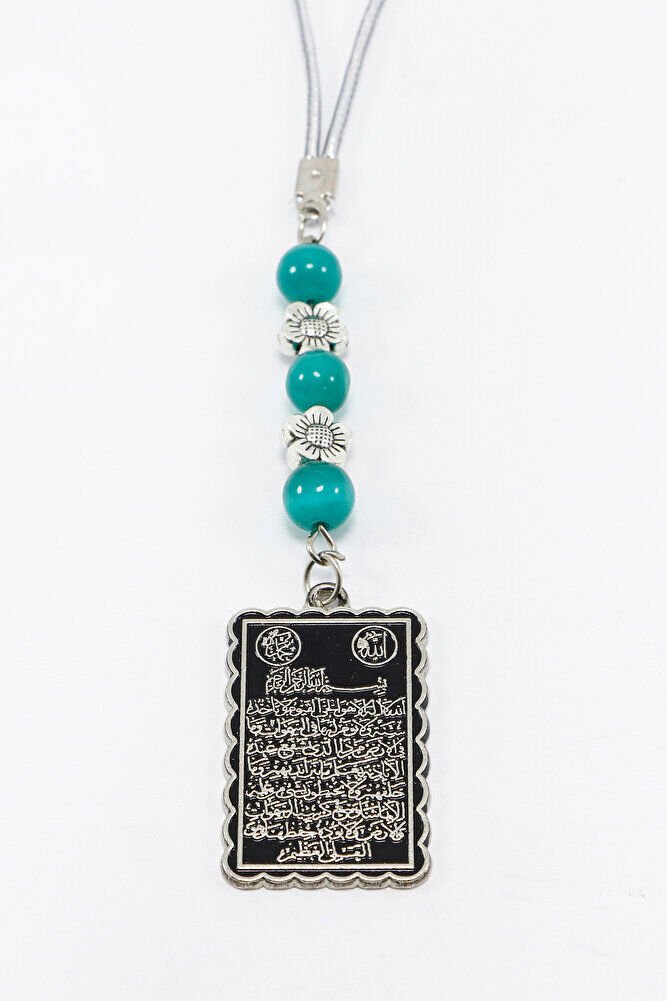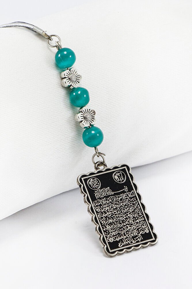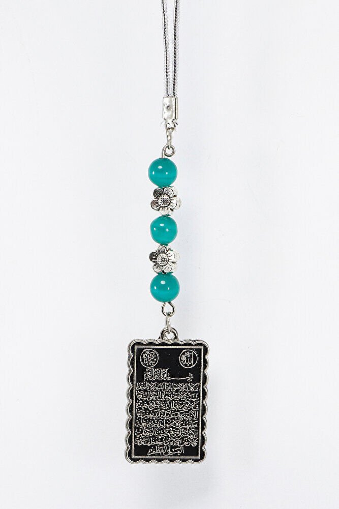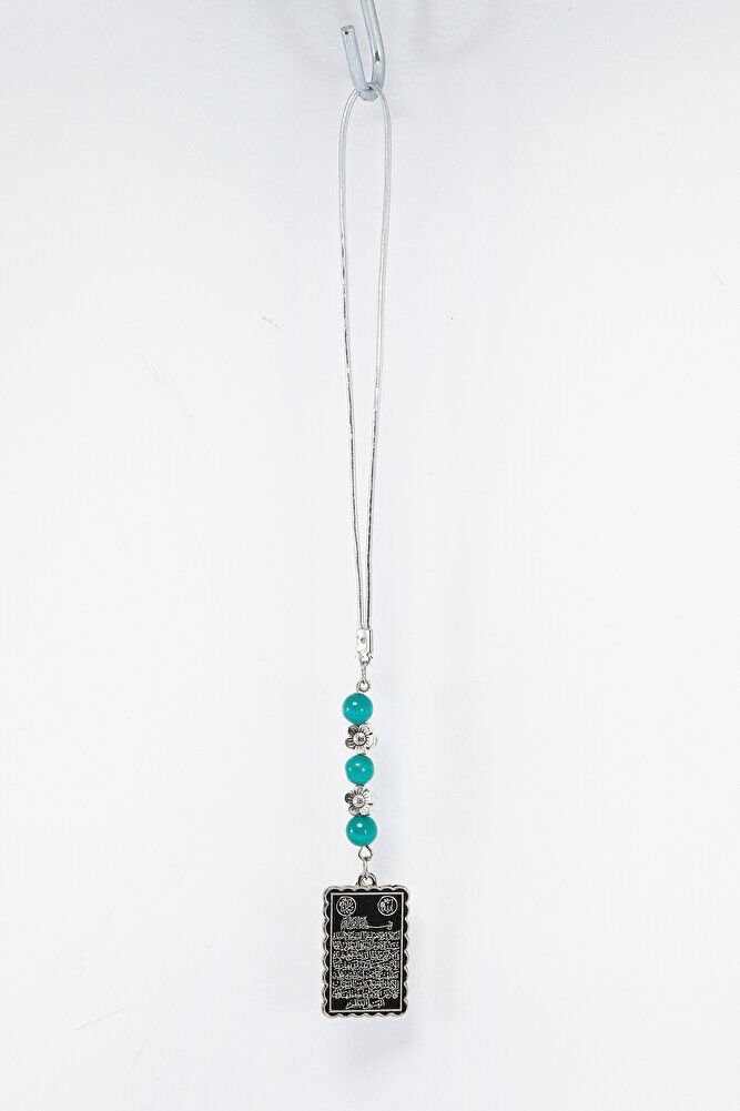 Eskitme Çiçekli Turkuaz Doğal Taş Ayetel Kürsi Araba Dikiz Ayna Süsü, Yeni Araba Hediyesi