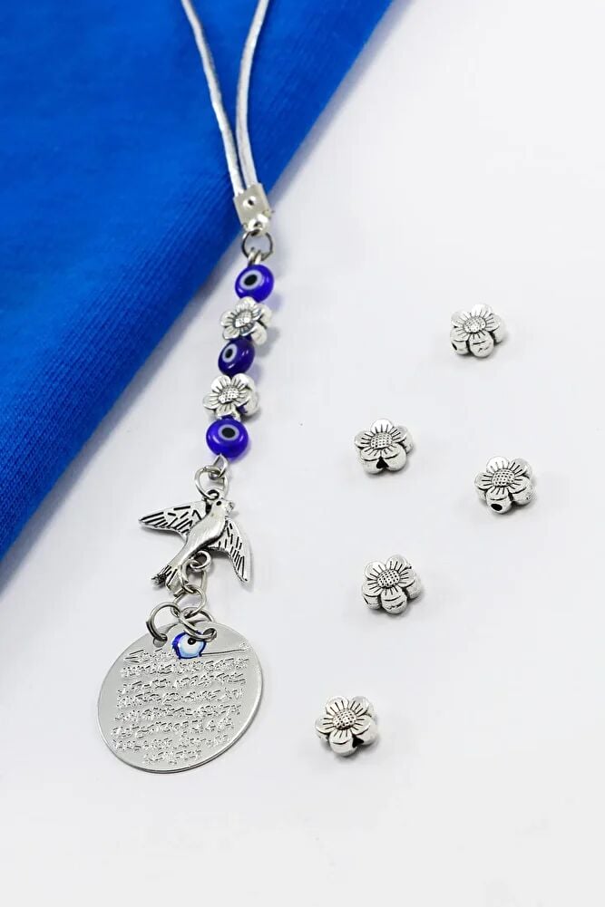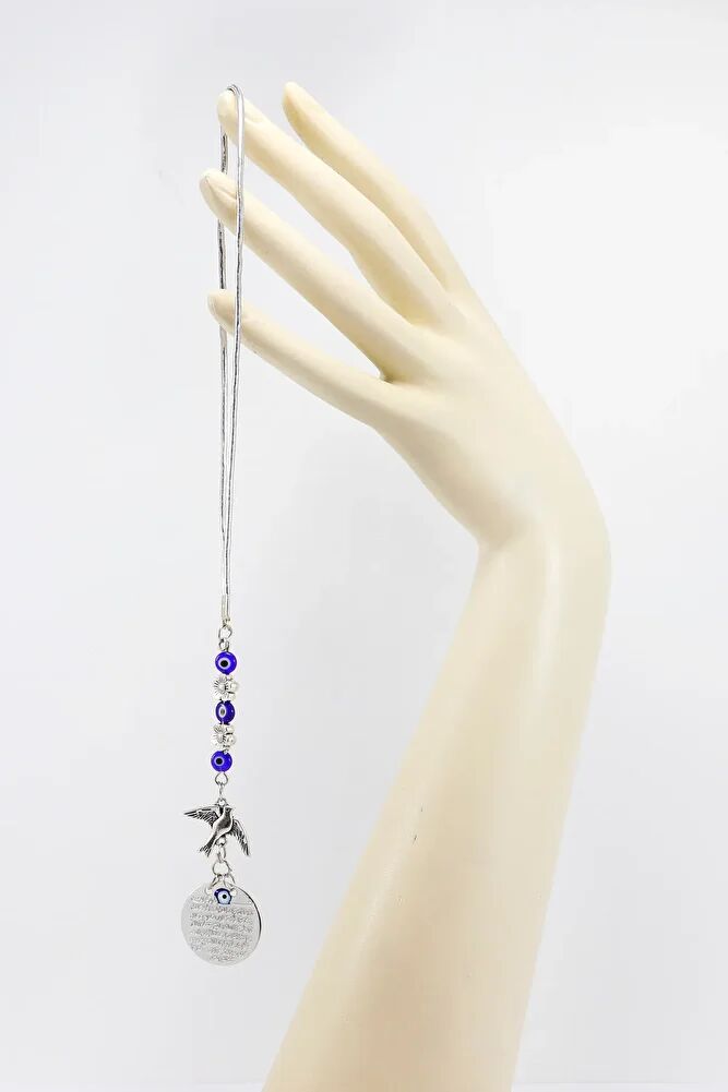 Eskitme Kuş Detaylı Cam Nazar Boncuklu Metal Ayetel Kürsi Araba Dikiz Ayna Süsü, Yeni Araba Hediyesi