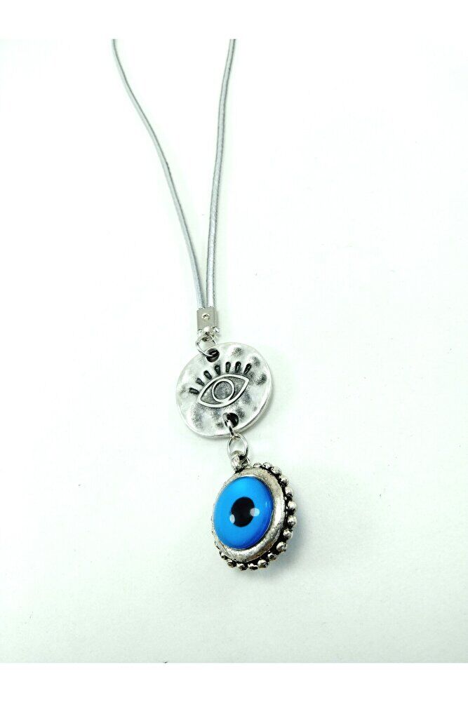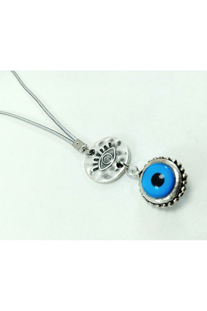 Ürünel yapımı camdır. Alt kısımdaki mavi boncuk çift taraflıdır. Metalik ip elastiktir. El yapımı olduğu için ufak farklılık ve düzensizlikler olasıdır. Özel tasarımdır. Sınırlı sayıda imal edilmiştir. Nazar boncuğu, Türk kültüründe ve diğer bazı Orta Doğu ülkelerinde kullanılan bir tür koruyucu nesnedir. Genellikle mavi ve beyaz renklerde tasarlanan küçük bir boncuktur ve içinde siyah bir nokta veya göz şekli bulunur.Nazar boncuğunun amacı, kişinin üzerindeki kötü şansı, kıskançlığı veya nazarı (bakışları) uzaklaştırmak ve korumak için kullanılır. Bu nedenle, evlerde, arabalarda, iş yerlerinde, takılarda ve hatta bebeklerin kıyafetlerinde kullanılabilir.