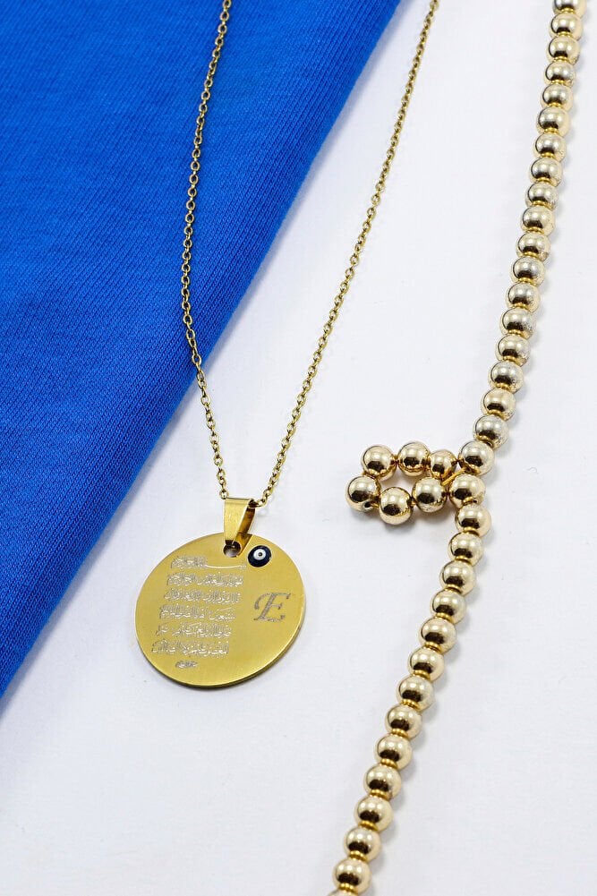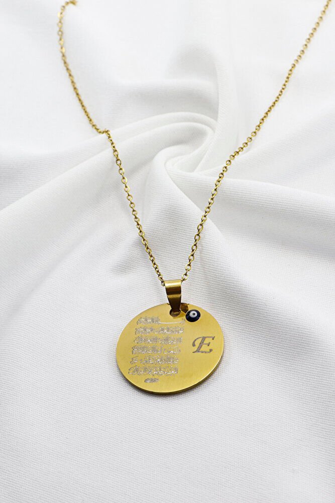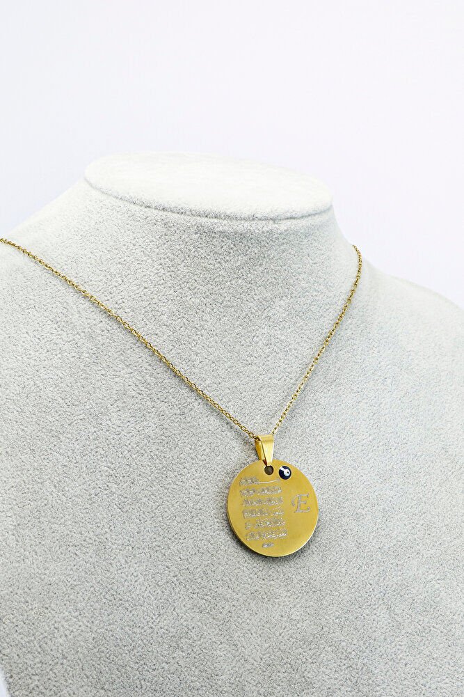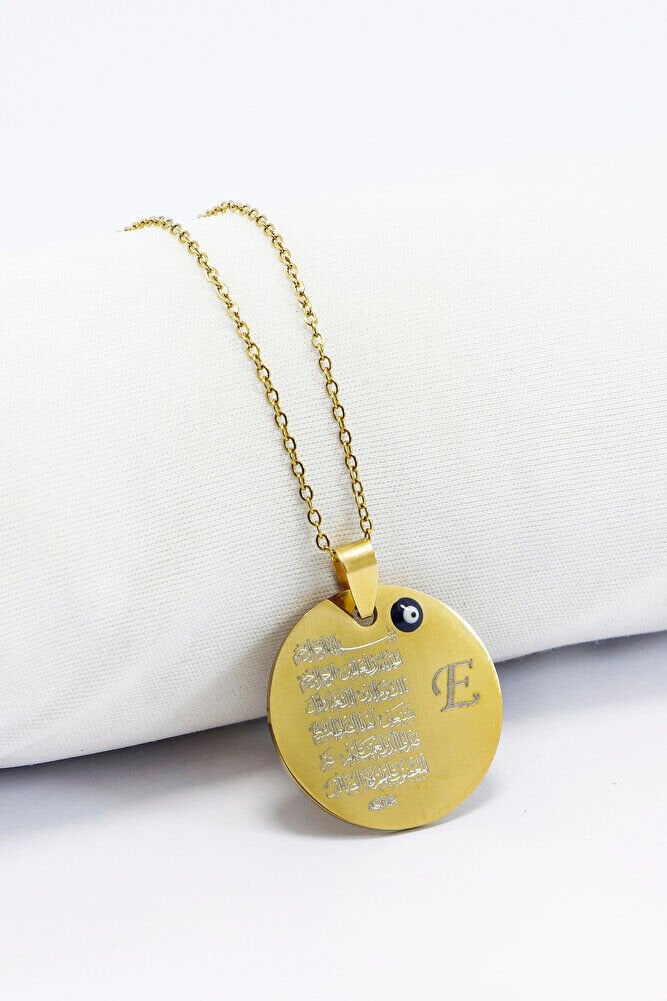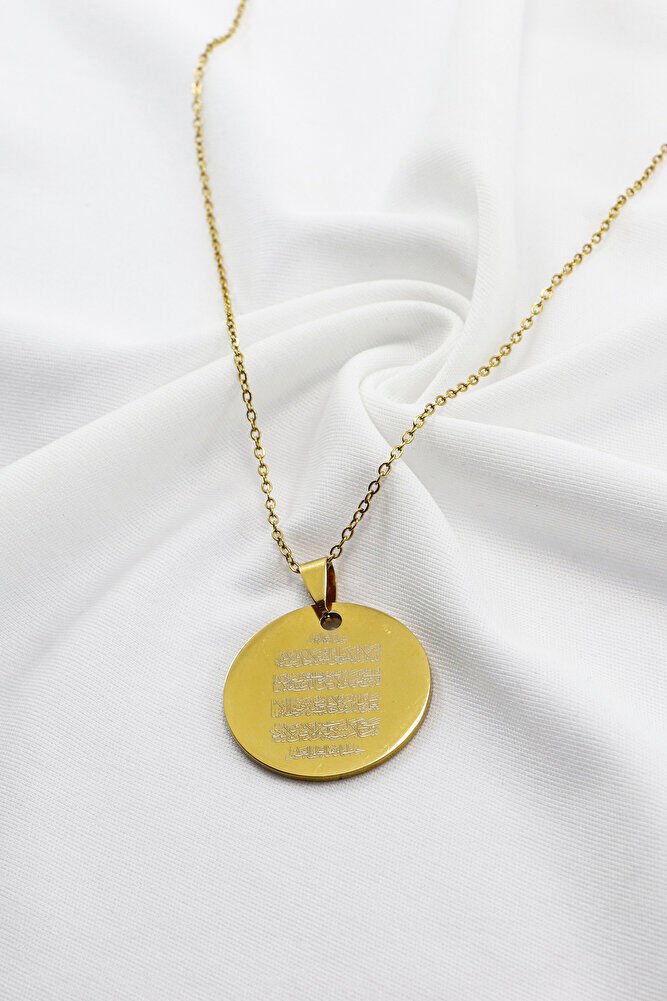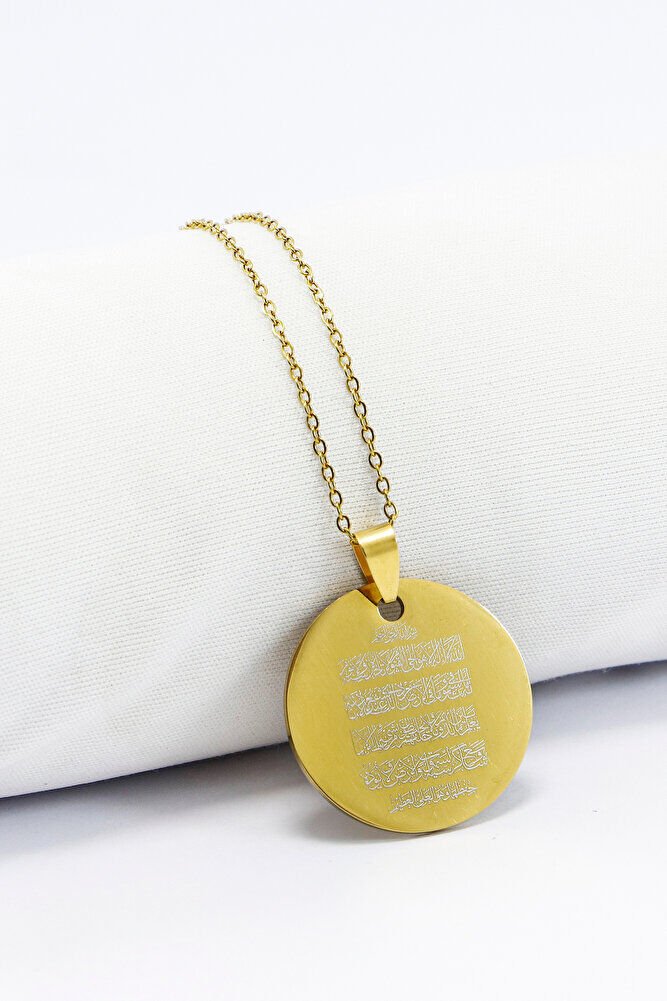 Gold 316L Kişiselleştirilebilir Çelik Kolye Lazer Kazıma Önde Fatiha Arkada Ayet'el Kürsi 3cm
