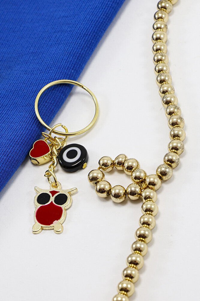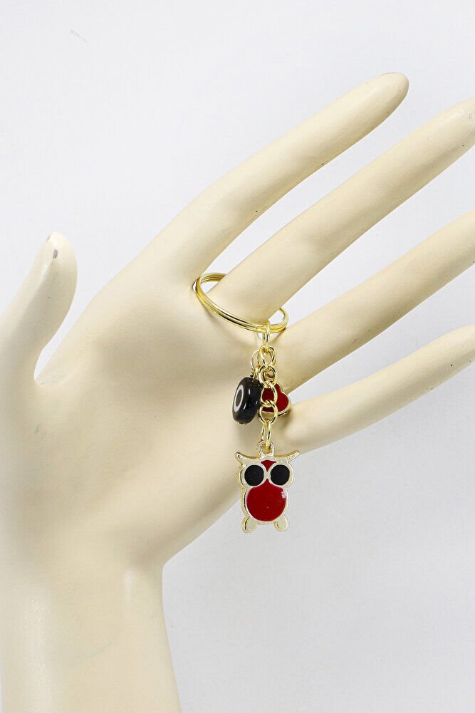 Gold Halkalı Sevimli Baykuş El Yapımı Siyah Cam Nazar Boncuklu Anahtarlık, Hediyelik Çanta Süsü