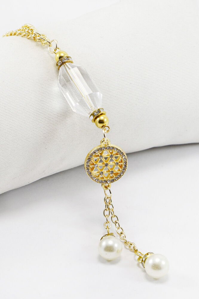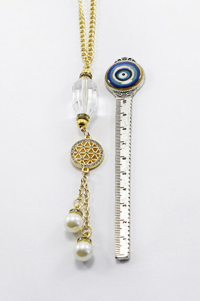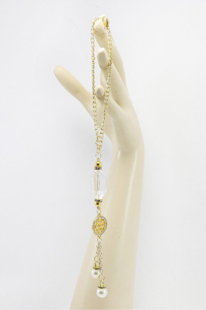 Gold Zirkon Taşlı Yaşam Çiçekli Şeffaf Boncuk Salkım İncili Dikiz Ayna Süsü, Yeni Araba Hediyesi