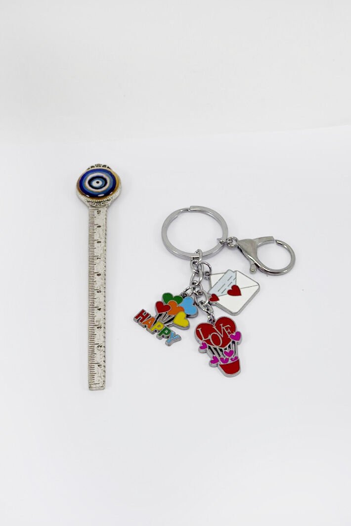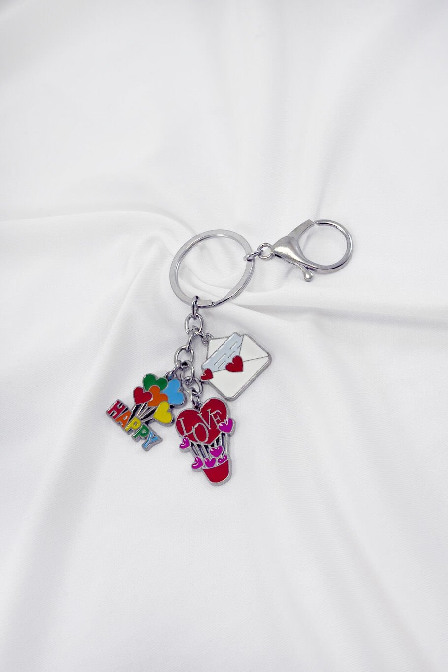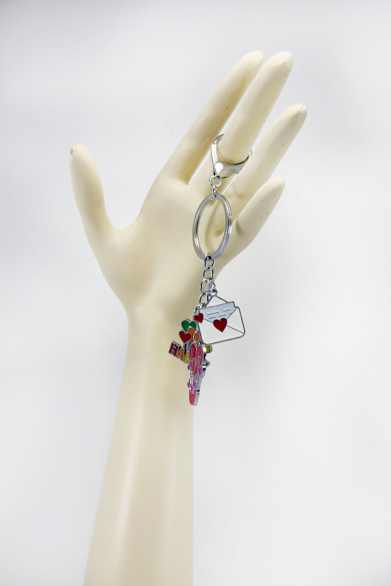 Gümüş renk halkalı minyatür zarflı ve renkli balonlu figürleriyle tasarlanmış bu şirin anahtarlık, hayal gücünü ve sevgi dolu mesajları simgeler.