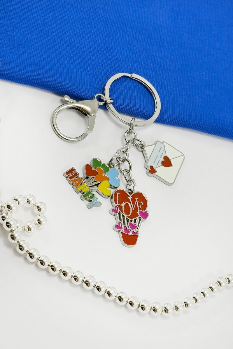 Gümüş Renk Halkalı Minyatür Zarflı Renkli Balonlu Figürlü Anahtarlık, Hediyelik Çanta Süsü