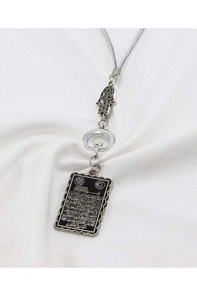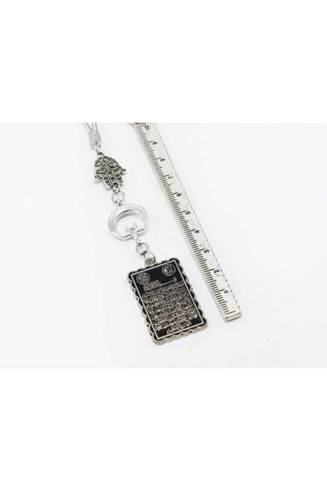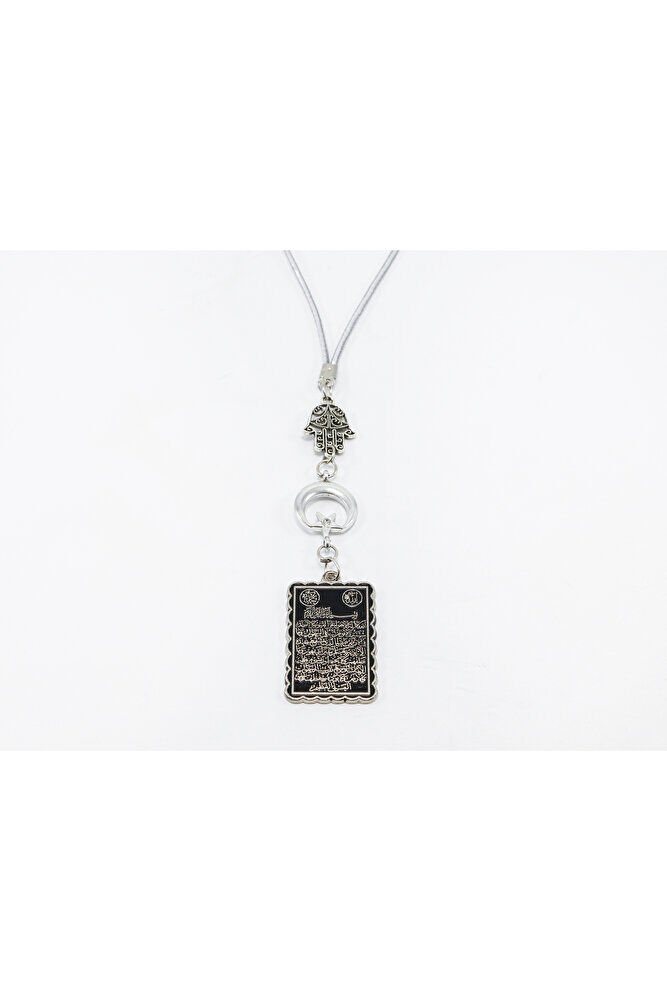 Ürün el yapımıdır.; El Yapımı olduğu için ufak farklılık ve değişiklikler bulunmaktadır.; İpi lastiklidir.; Latikli olduğu için her model araca rahatlıkla takılabilmektedir.; Ürün metaldir.; Hamse eli ve ay yıldız tek taraflıdır.; Ayetel Kürsi, Kur’an-ı Kerim’in Bakara Suresi’nde yer alan ve çeşitli inançlara göre güçlü anlamlar taşıdığı kabul edilen bir ayettir.; Yaygın inanışlara göre; - Koruyucu bir etkisi olduğuna, özellikle gece okunmasının huzur verdiğine, - Allah’ın kudretini ve birliğini vurguladığına, - Manevi olarak kişinin iç huzurunu artırabileceğine inanılır.; Bu anlamlar, bireylerin inanç düzeyine ve dini yorumlarına göre farklılık gösterebilir.;