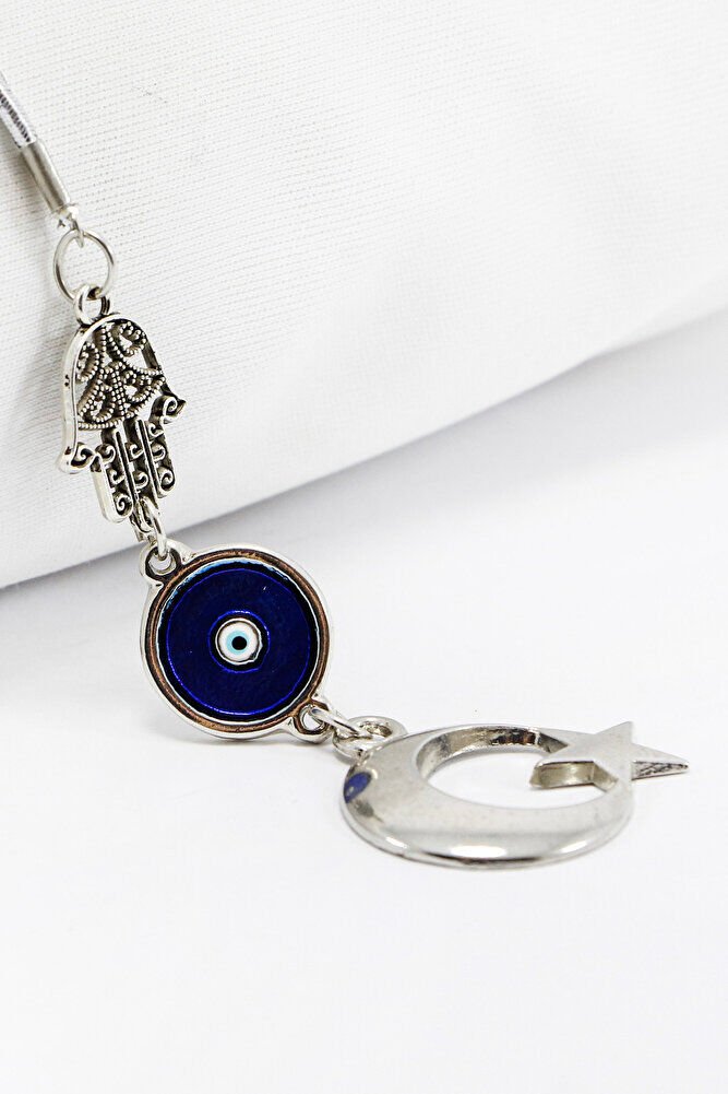 Hamse Eli Çerçeveli Nazar Boncuklu Ay Yıldız Araba Dikiz Ayna Süsü, Yeni Araba Hediyesi