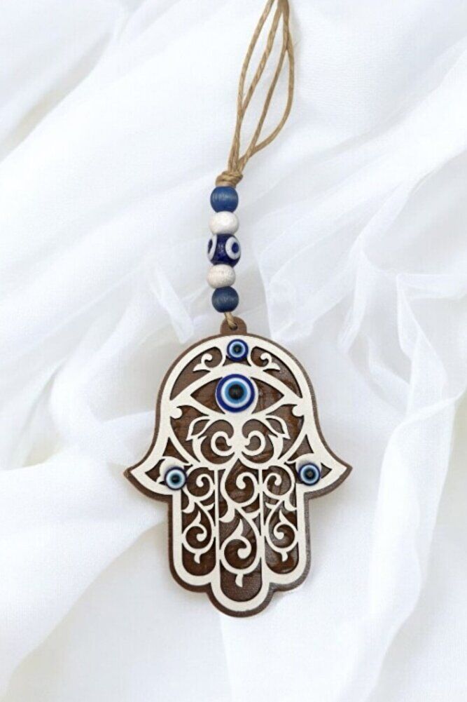 Hamse Fatma Ana Eli Ahşap Duvar Dekoru Nazar Boncuğu Hediyelik Eşya
