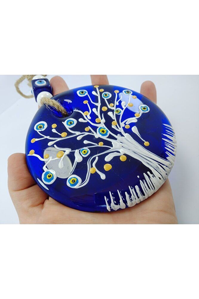 Hayat Ağacı Nazar Boncuğu El Apımı Cam Duvar Dekoru Hediyelik Eşya 10 Cm