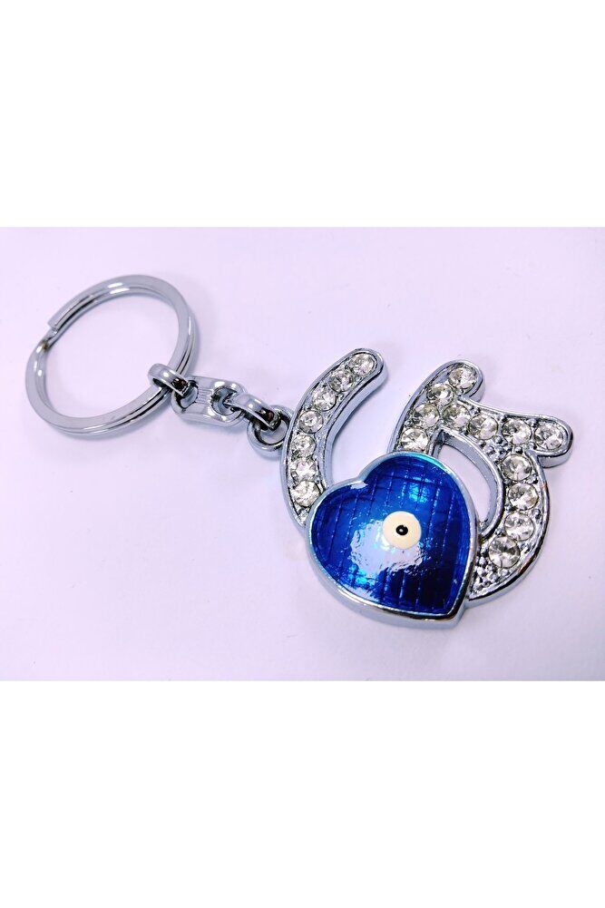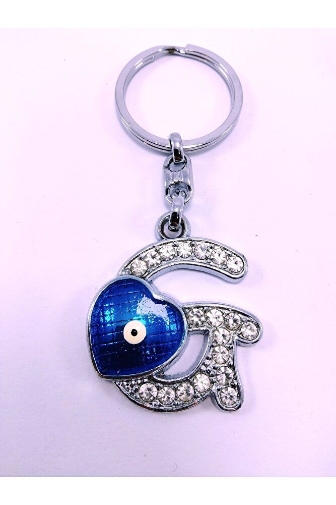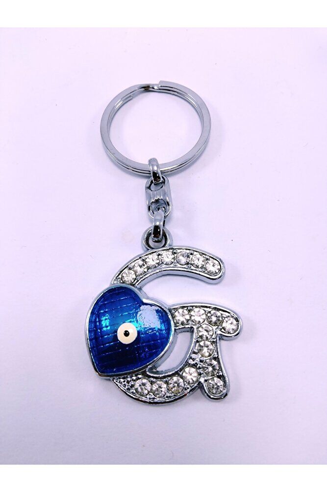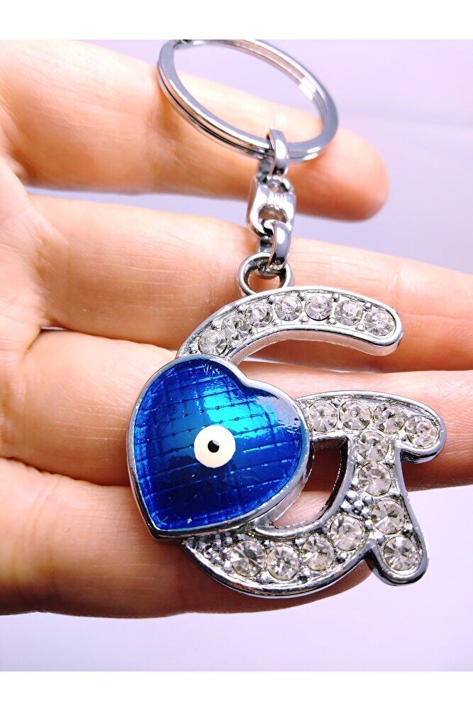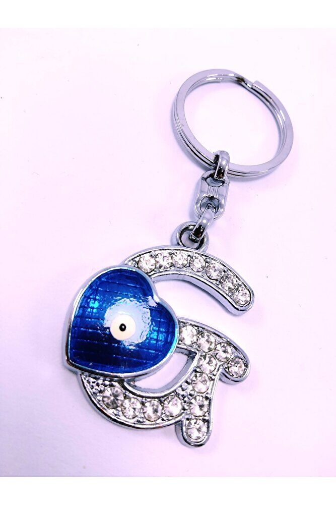 Kalp Nazar Boncuğu Metal Kristal Taşlı G Harfi Anahtarlık Hediyelik Aksesuar