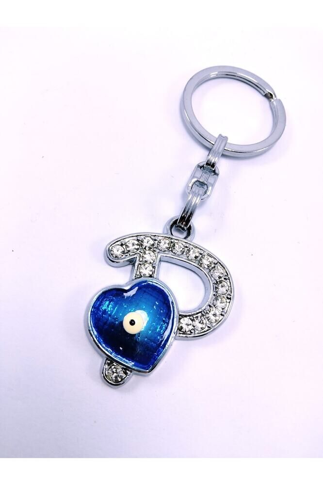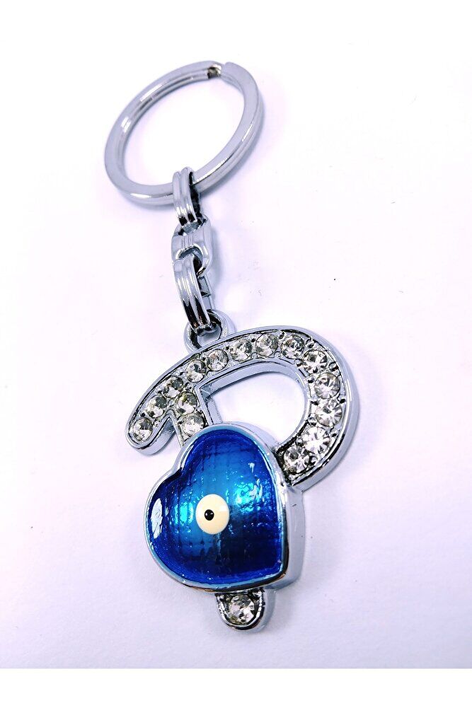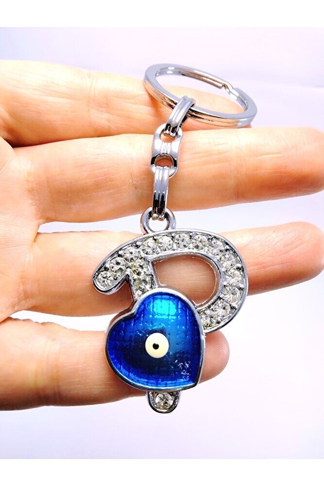 Kalp Nazar Boncuğu Metal Kristal Taşlı P Harfi Anahtarlık Hediyelik Aksesuar