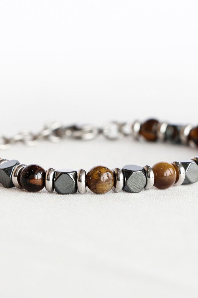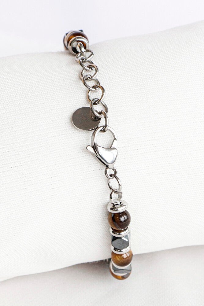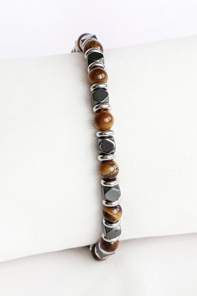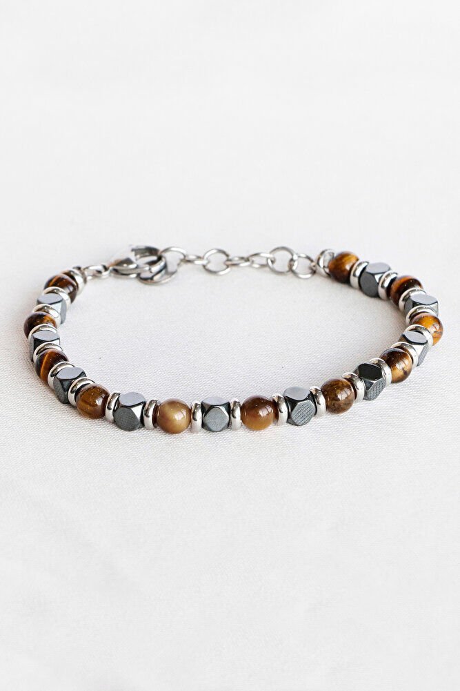 erkek bileklik, taşın kendine özgü sıcak tonlarını sade ve maskülen bir tasarımla bir araya getirir. Işığa göre değişen çizgili dokusu, bilekliğe karakterli ve dikkat çekici bir görünüm kazandırır. Günlük kullanıma uygun yapısı sayesinde hem rahat hem de şık bir stil sunar. El işçiliğiyle hazırlanan bu bileklik, farklı kombinlere kolayca uyum sağlar ve tek başına kullanılabileceği gibi diğer bilekliklerle birlikte de kombinlenebilir. Doğal taşın yapısından kaynaklanan küçük renk ve desen farklılıkları her bilekliği benzersiz kılar. Zamansız tasarımıyla stilini tamamlamak isteyen erkekler için ideal olduğu gibi, sevdiklerinize anlamlı ve şık bir hediye alternatifi olarak da tercih edilebilir.