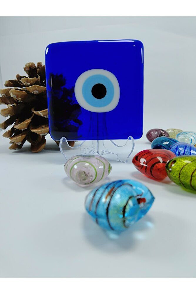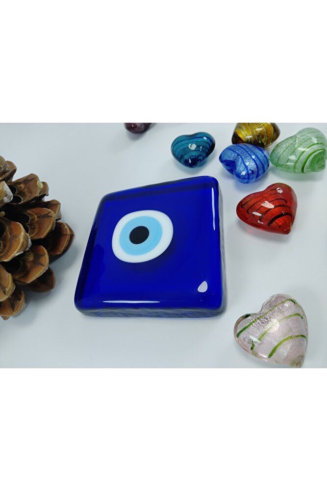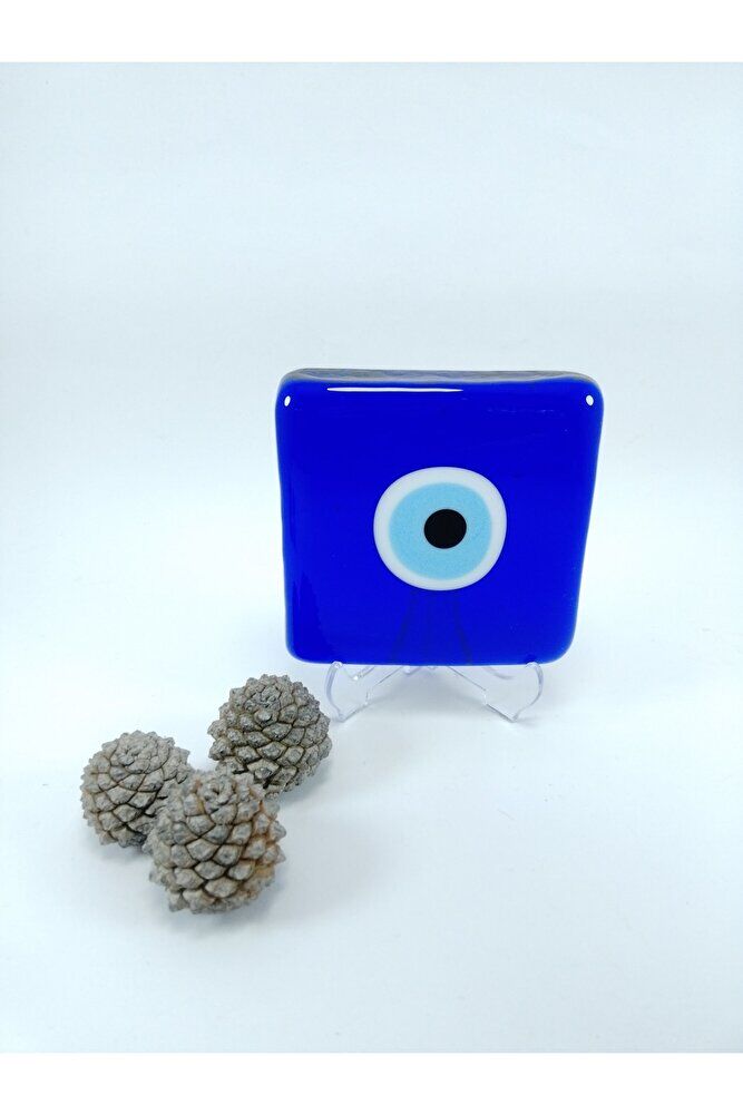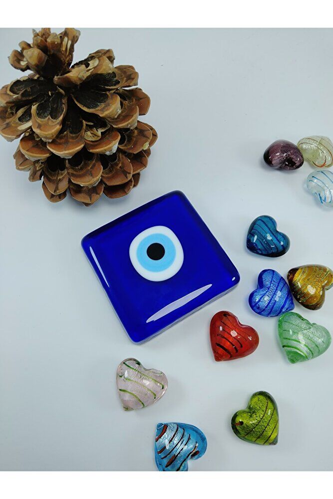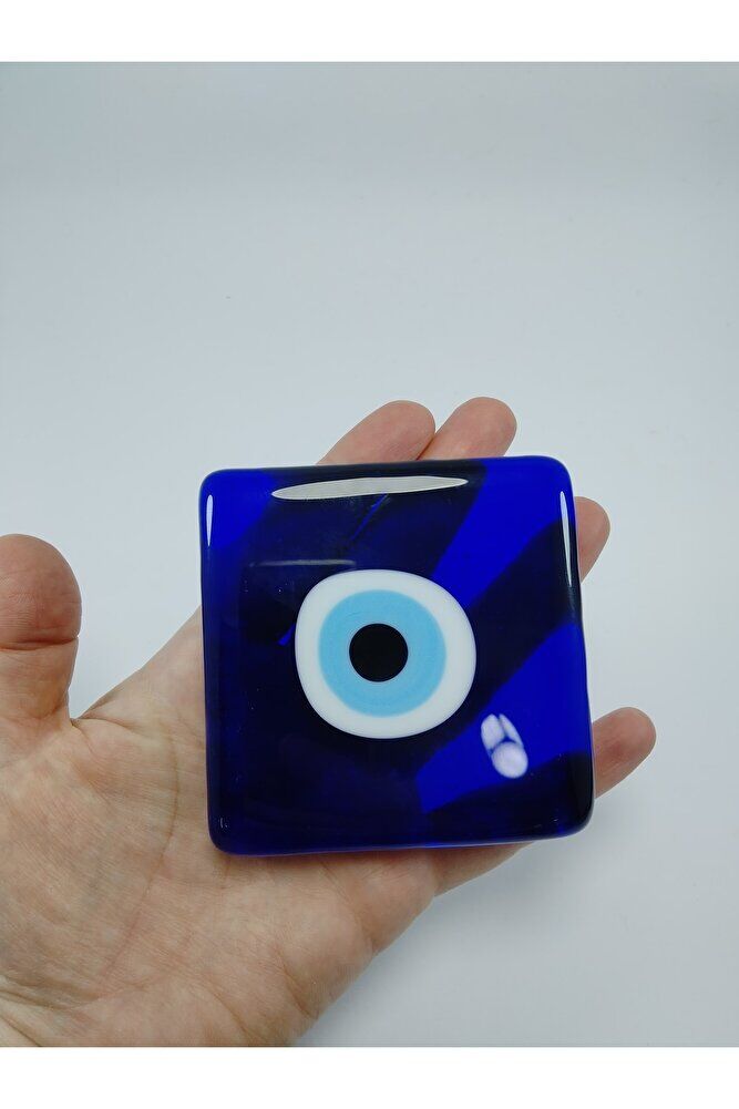 Kare Deliksiz Cam Nazar Boncuğu El Yapımı Masaüstü Dekoru 8*8 Cm