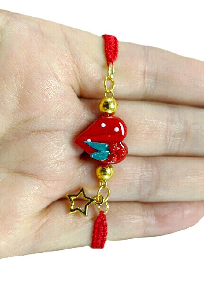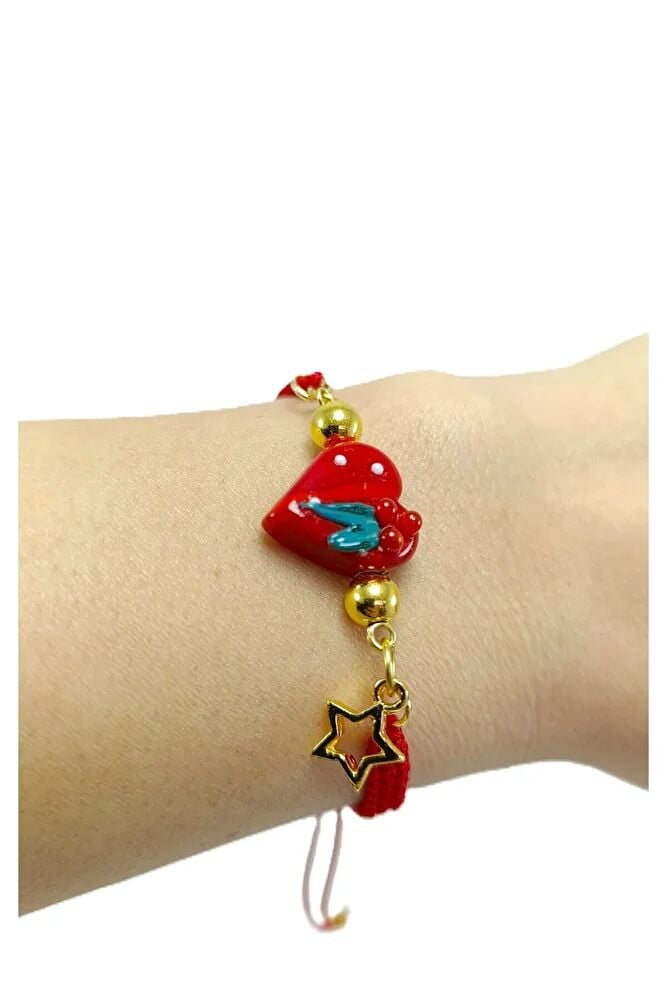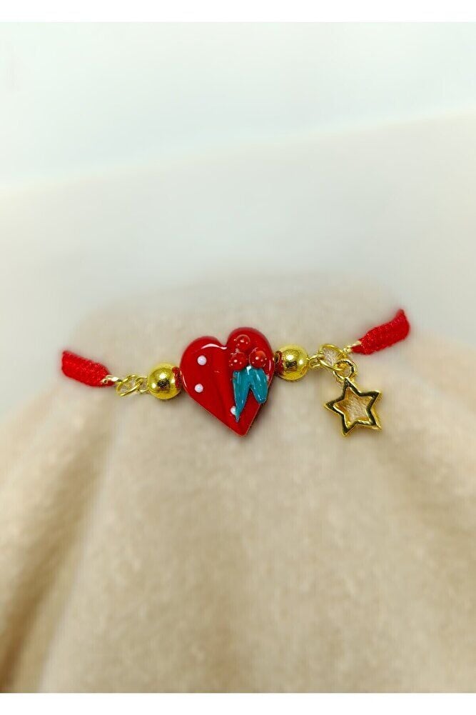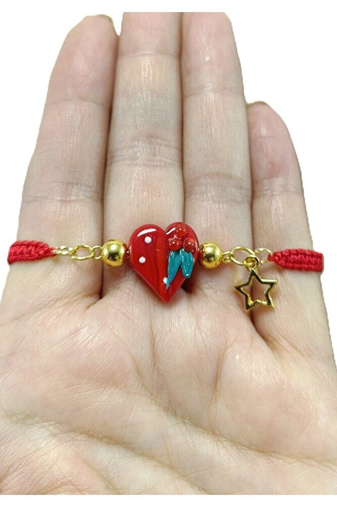 Kırmızı Cam Kalp Yılbaşı Yeni Yıl Bileklik El Yapımı Hediyelik Aksesuar, Asansör Bileklik
