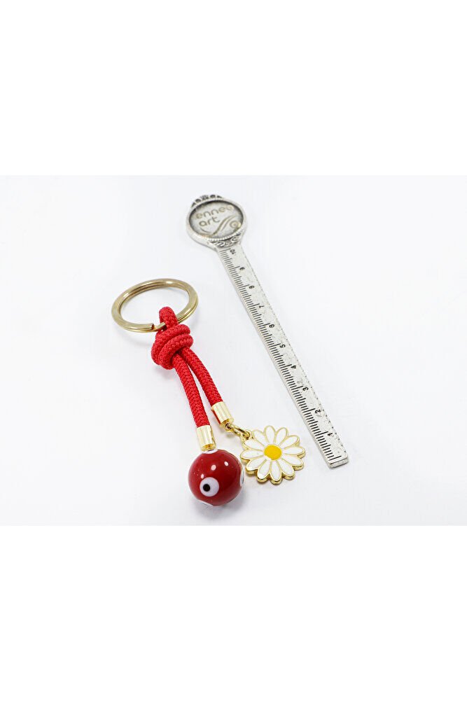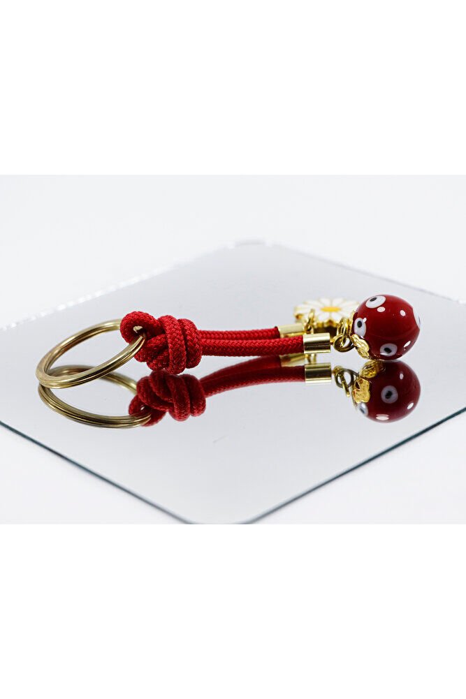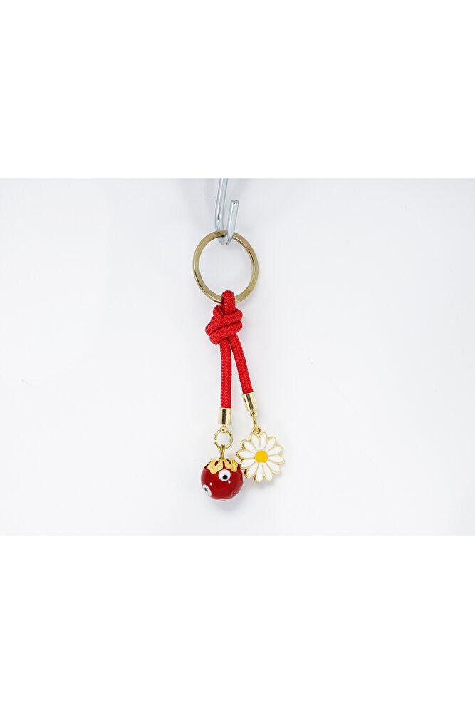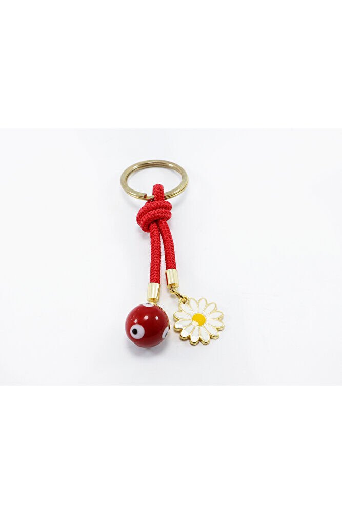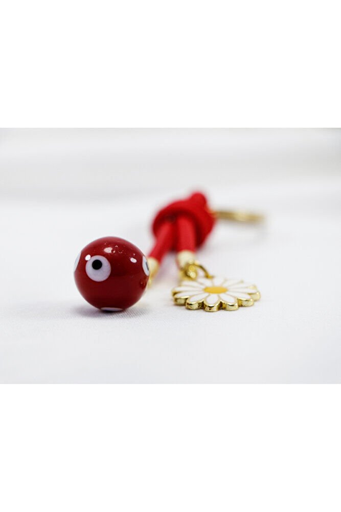 Kırmızı Cam Nazar Boncuklu Papatyalı Anahtarlık, Hediyelik Cam Boncuklu Çanta Süsü