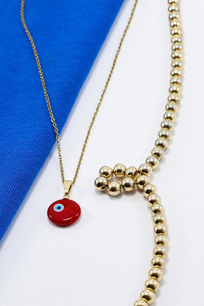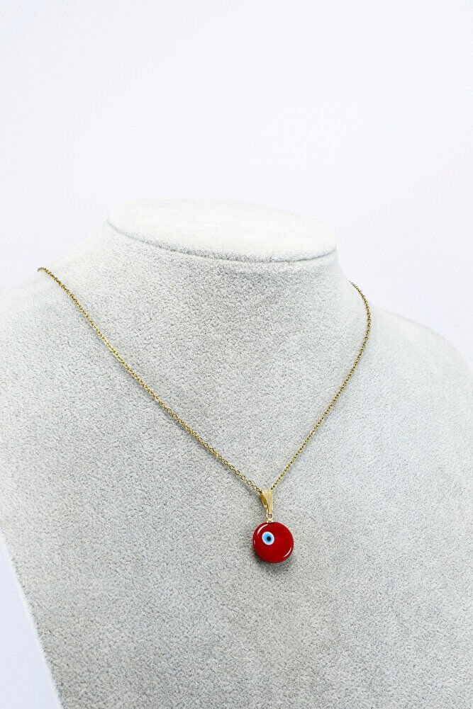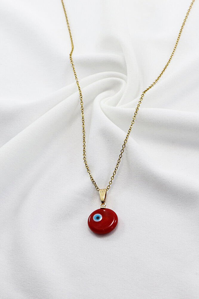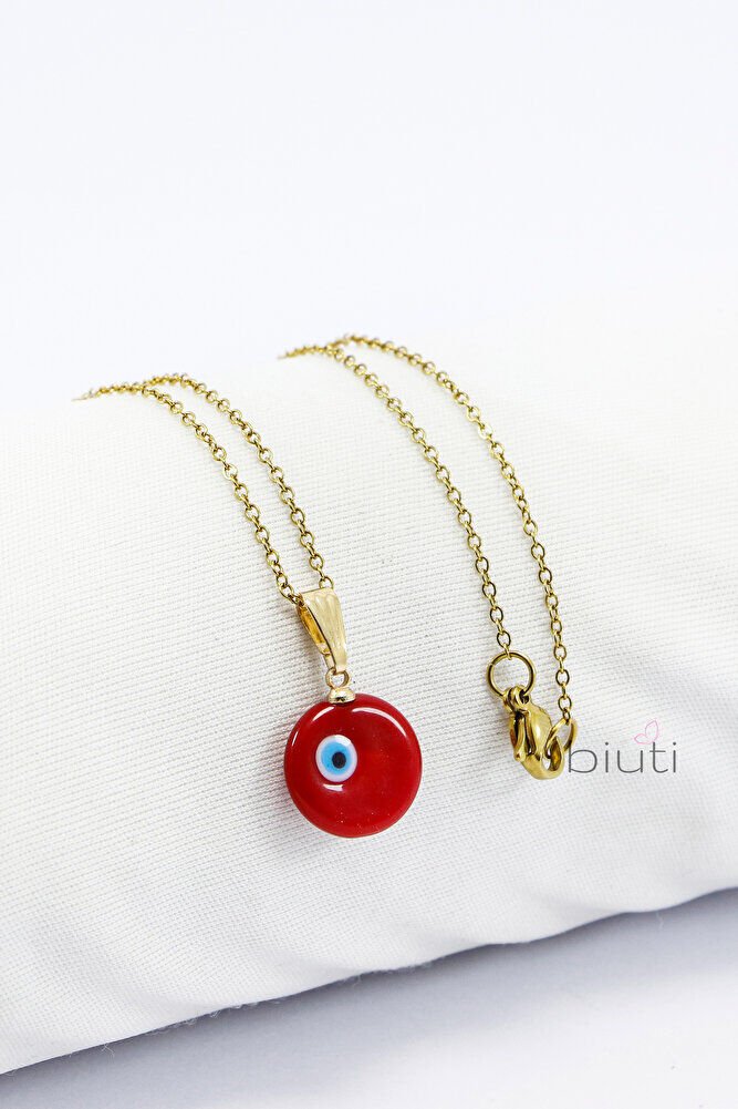 Kırmızı El Yapımı Nazar Boncuğu Çelik Kolye, Hediyelik Kolye