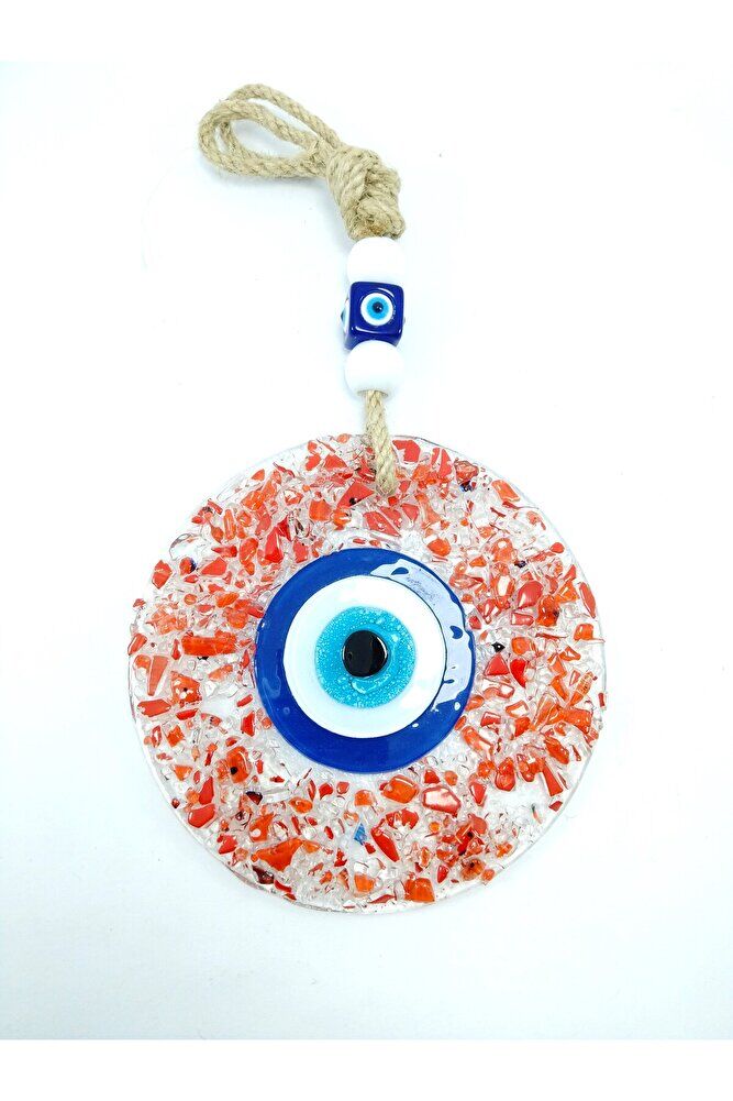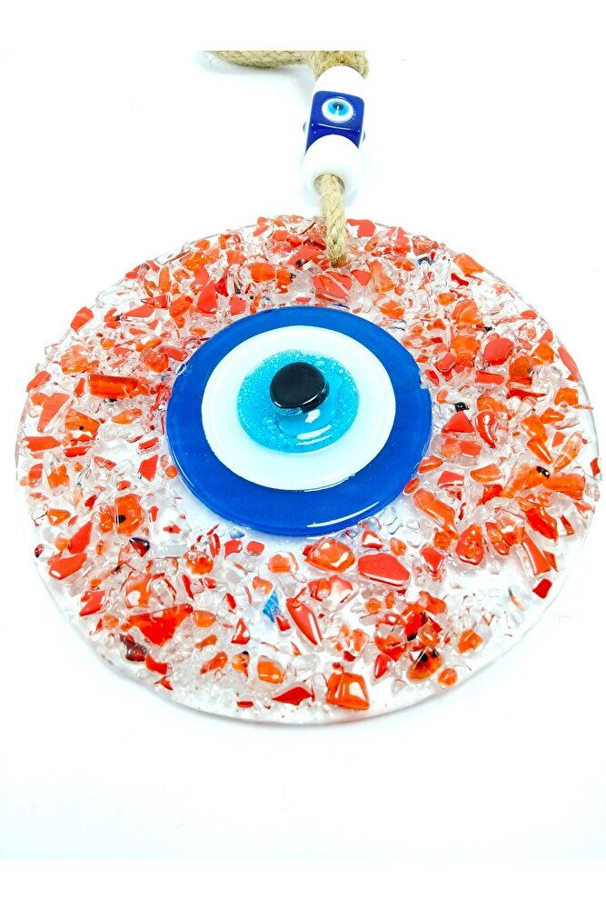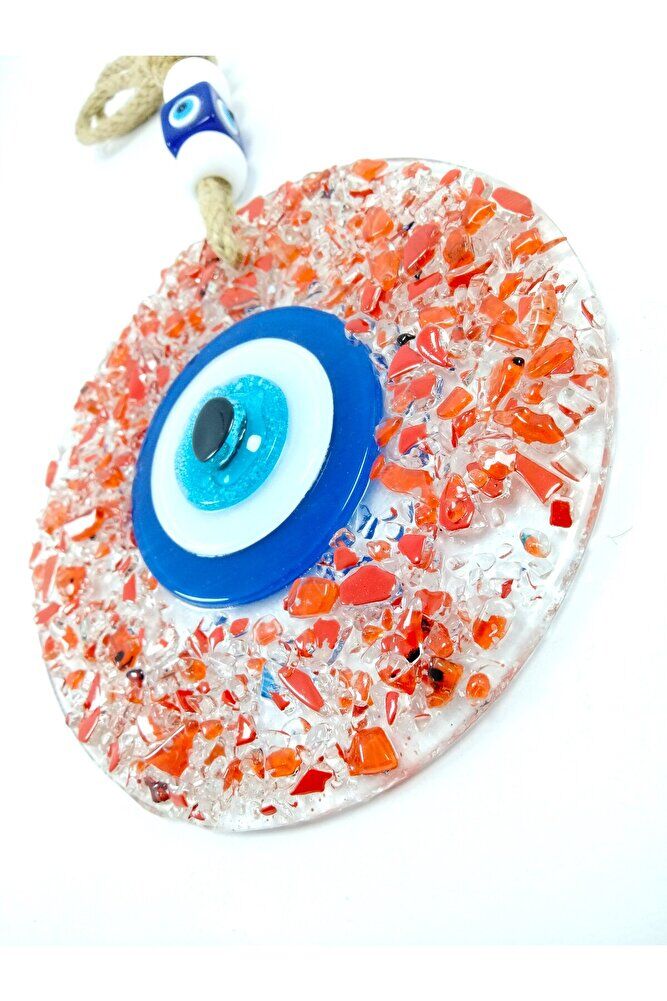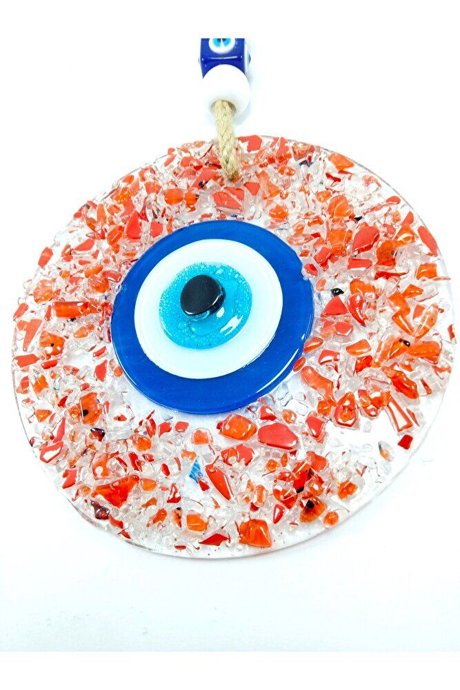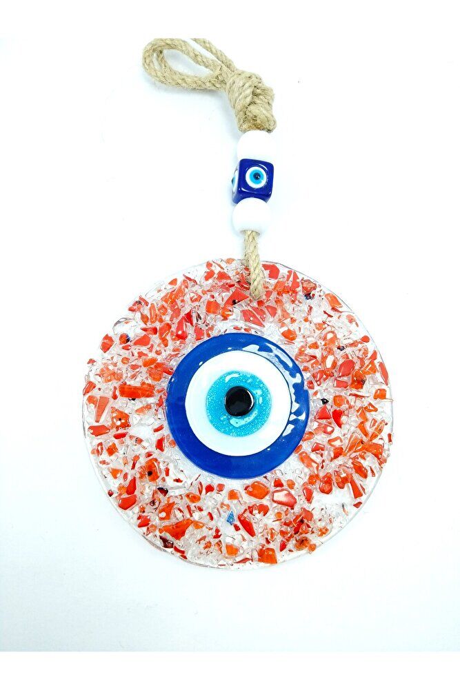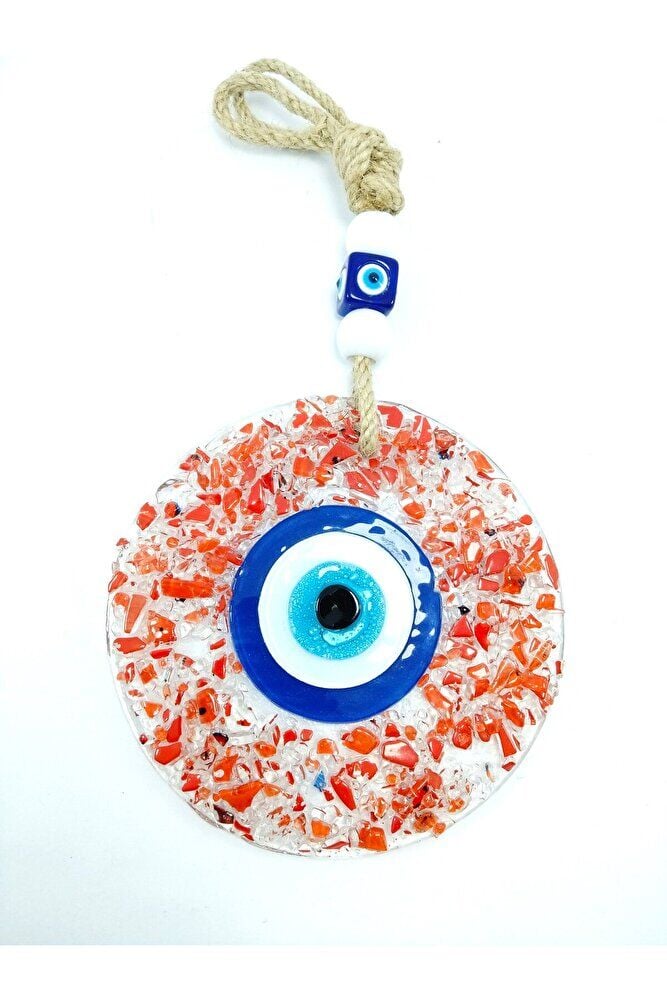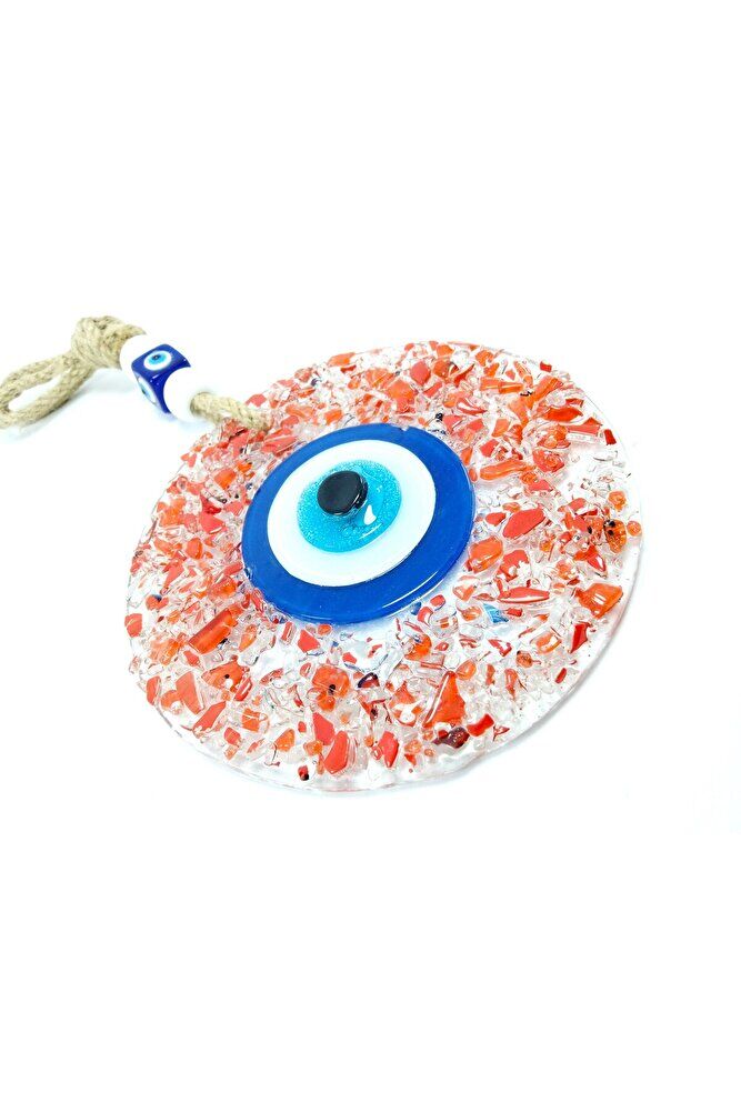 Kırmızı Nazar Boncuğu 13 Cm El Yapımı Cam Duvar Dekoru