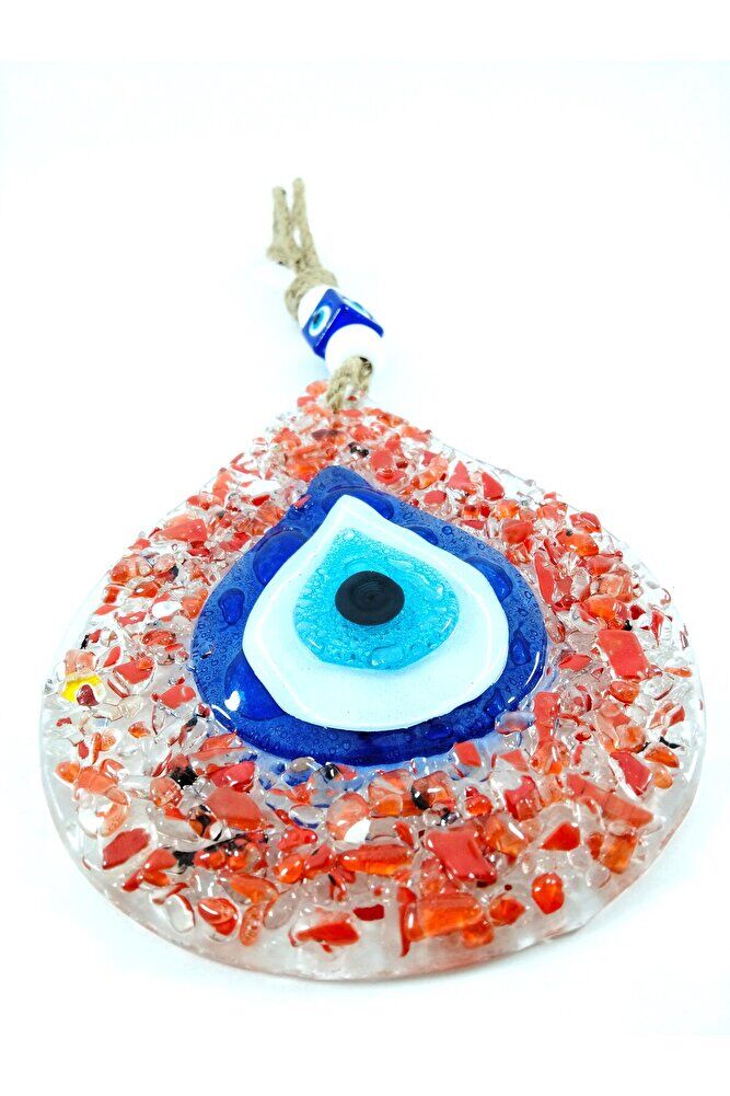 Kırmızı Nazar Boncuğu Duvar Dekoru El Yapımı Füzyon Cam Hediyelik Eşya