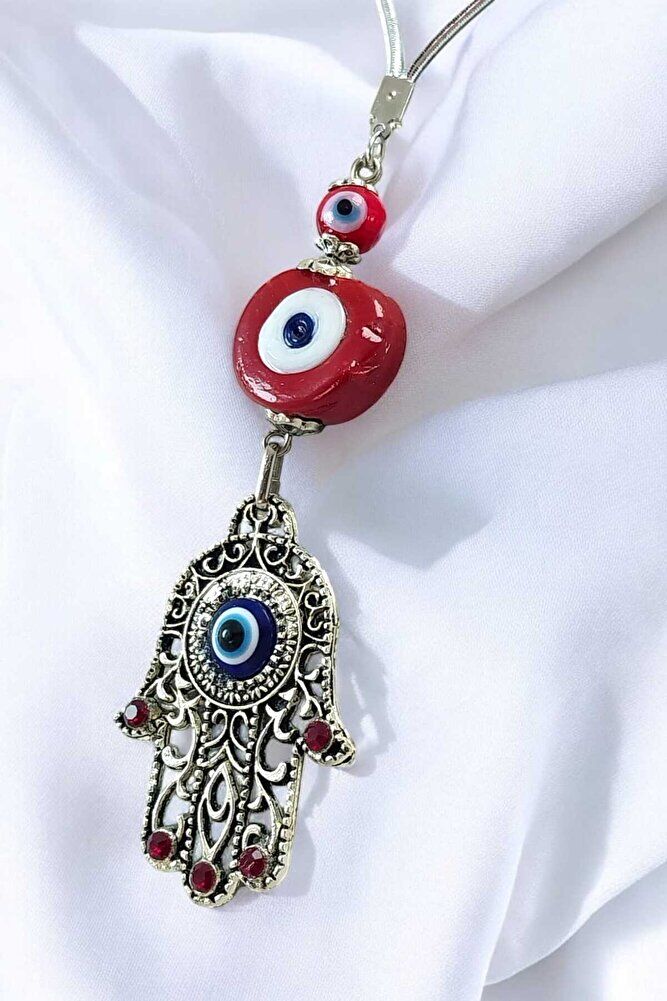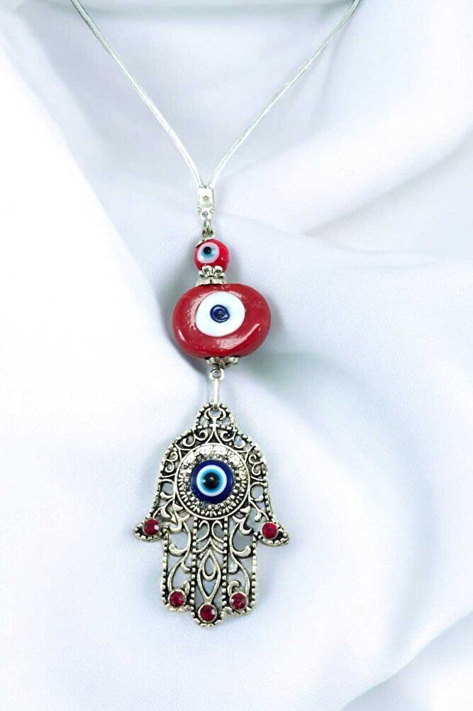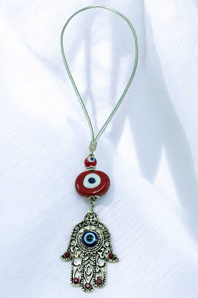 Kırmızı Nazar Boncuğu Hamse / Fatıma Eli Araba Dikiz Ayna Süsü Lüks Hediyelik Aksesuar