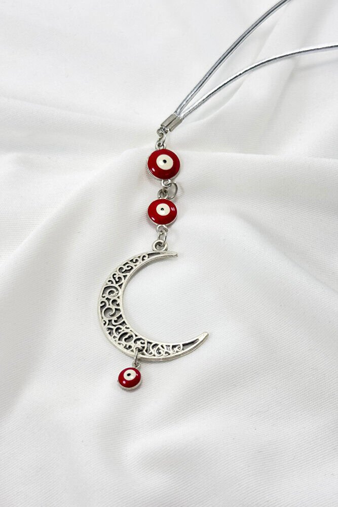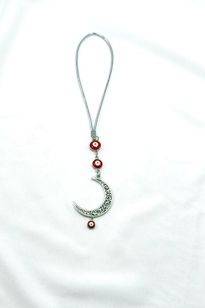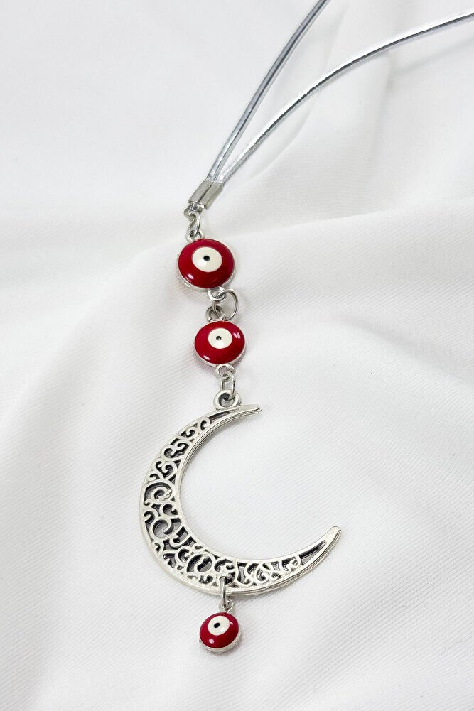 Kırmızı Nazar Boncuklu Ay Araba Dikiz Ayna Süsü, Yeni Araba Hediyesi
