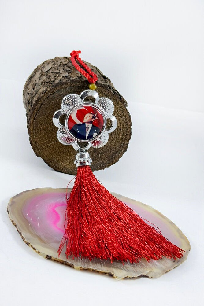 Kırmızı Püsküllü Ay Yıldız K. Atatürk Araba Dikiz Ayna Süsü, Yeni Araba Hediyesi