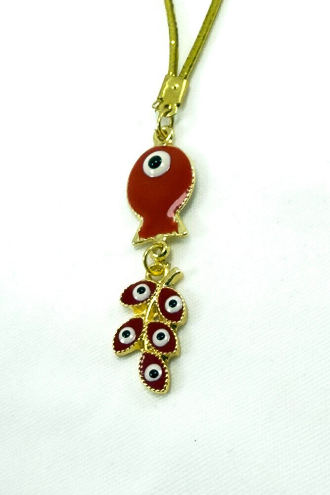 Kırmızı Salkım Nazarlı Balık Araba Dikiz Ayna Süsü, Yeni Araba Hediyesi