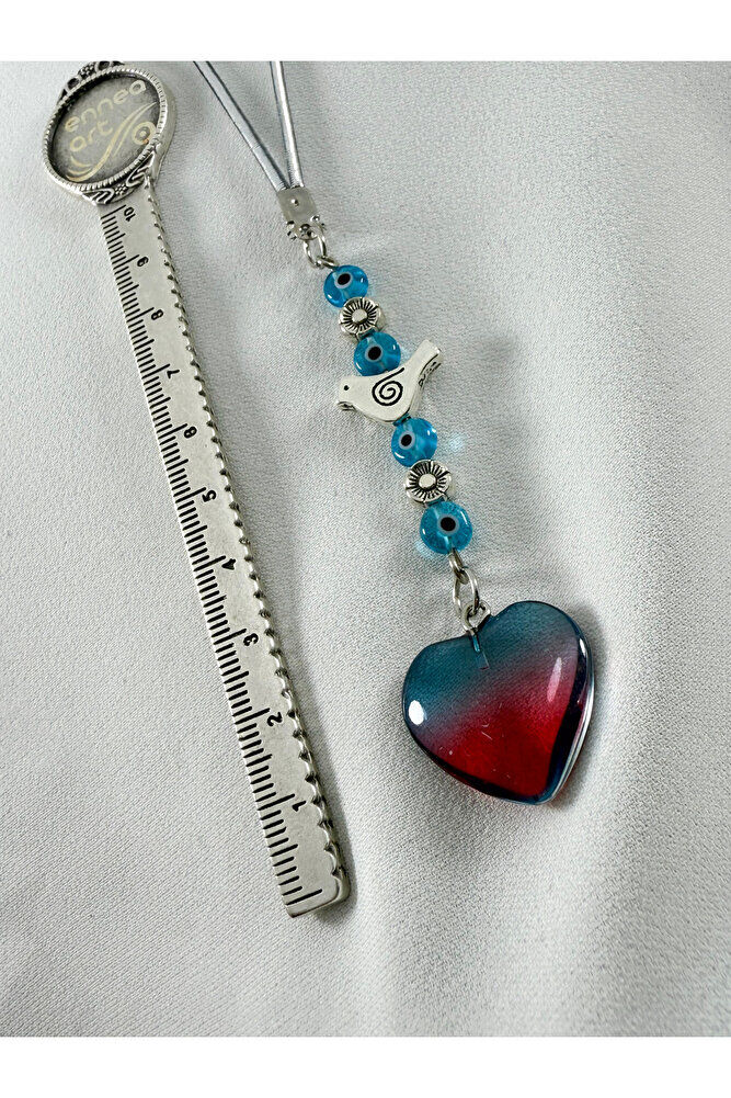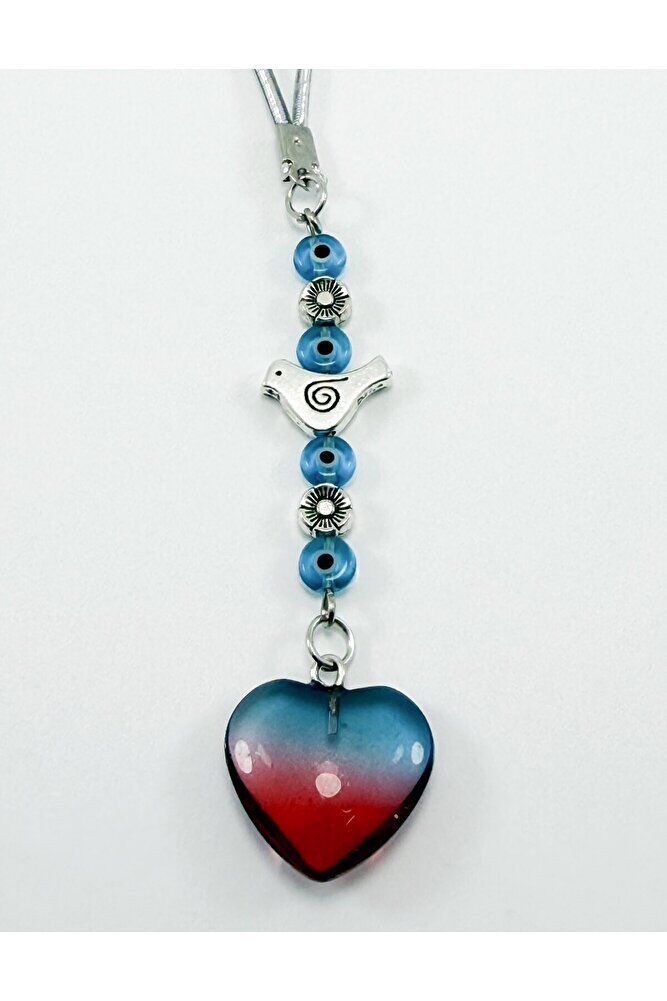 Kırmızı Turkuaz Cam Nazar Boncuğu Metal Kuş Araba Dikiz Ayna Süsü, Kalpli Yeni Araba Hediyesi