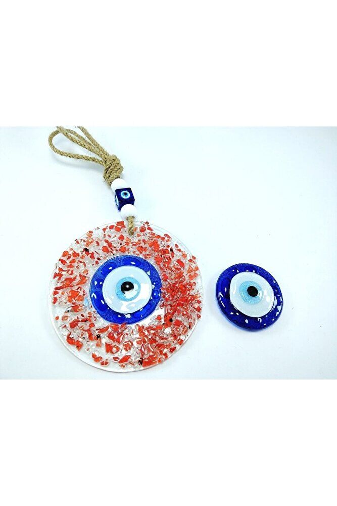 Kırmızılı Nazar Boncuğu 13 Cm El Yapımı Cam Duvar Dekoru + Magnet Hediyelik Set