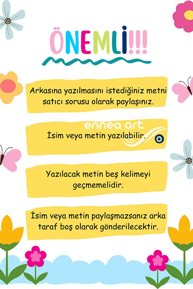 Metal tuğra uç çeliktir.; ; Metalik ip elastiktir.; ; Türk kültüründe geleneksel olarak"nazar boncuğu" olarak bilinen bu güçlü sembolün kötülükleri savuşturduğuna ve iyi şans getirdiğine inanılır.; ; Her cam boncuk yetenekli zanaatkarlar tarafından titizlikle işlenir ve bu her parçayı benzersiz kılar.; ; Nazar boncuğunu, müşterilerimize duvar süsü, anahtarlık, araba aksesuarı, kapı süsü, magnet gibi farklı formatlarda sunuyoruz.; ; Nazar tılsımının dünyadaki çeşitli kültürlerde farklı isimleri vardır.; ; Arapça'da "aynal-hasud" veya "haset gözü", Yunanca'da "mati" olarak bilinir.; ; Adı ne olursa olsun, nazar boncuğunun gücüne olan inanç evrenseldir.; Arka tarafa isim veya metin yazılmasını istiyorsanız talebinizi satıcı sorusu olarak paylaşmanız gerekmektedir.; Aksi halde arka kısım boş olarak gönderilecektir.;