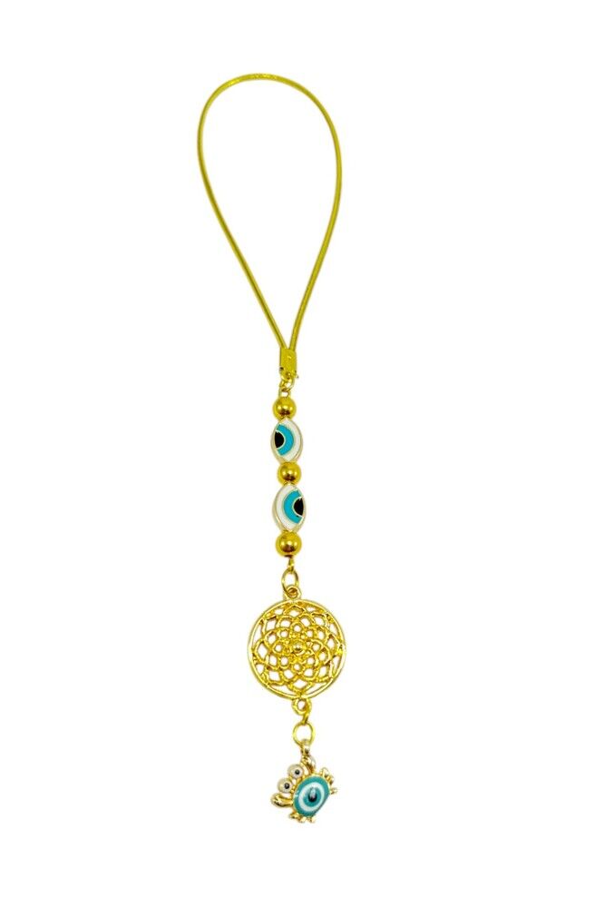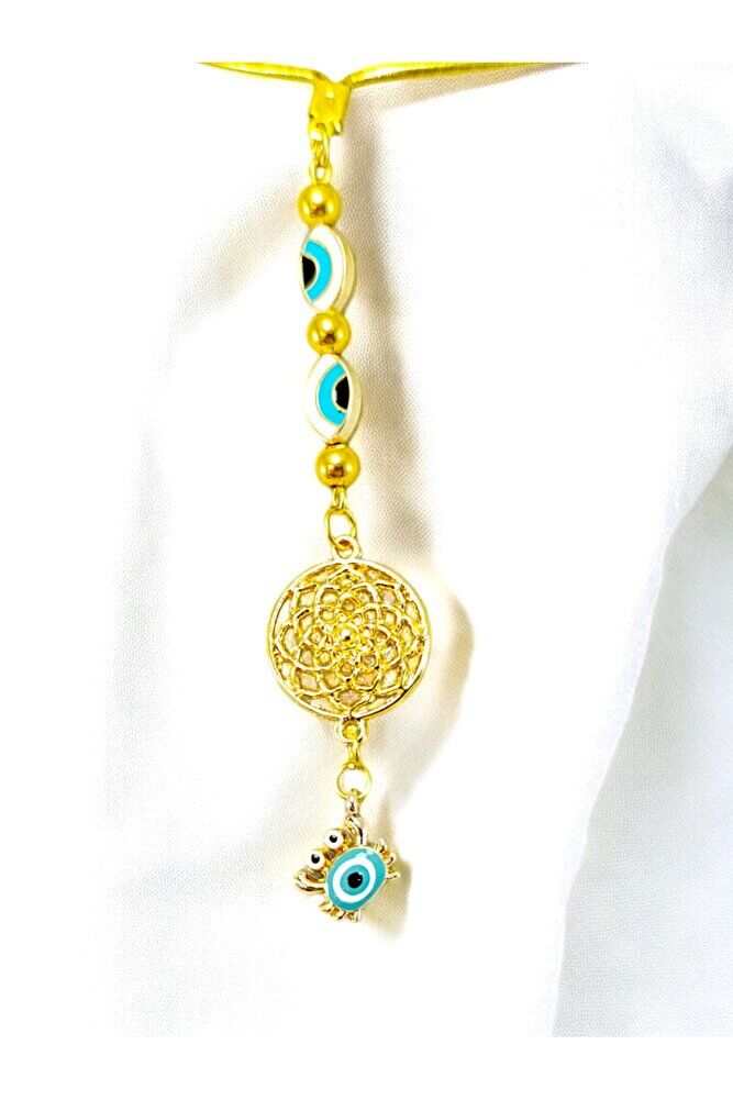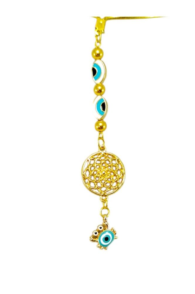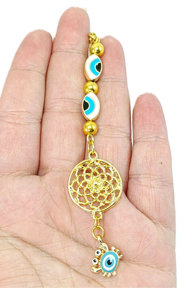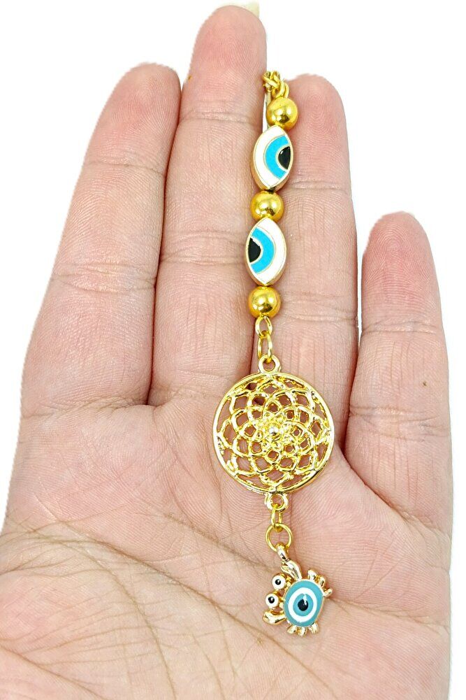 Küçük Yengeç, Elips Nazar Gözü Detaylı Metal Lotus Çiçeği Araba Dikiz Ayna Süsü/ Altın Rengi