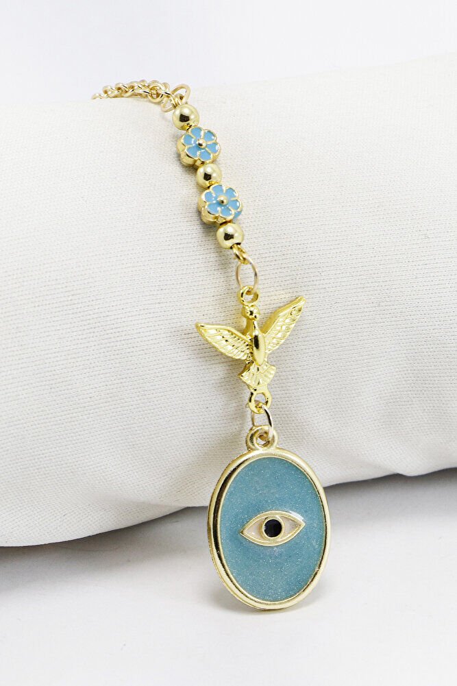 Kuşlu Küçük Çiçekli Mavi Sedefli Gözlü Dikiz Ayna Süsü, Yeni Araba Hediyesi