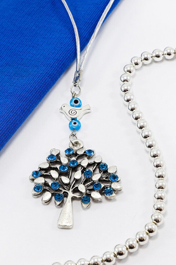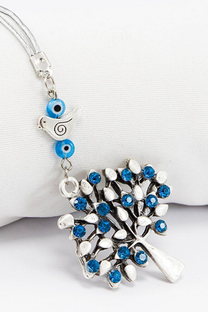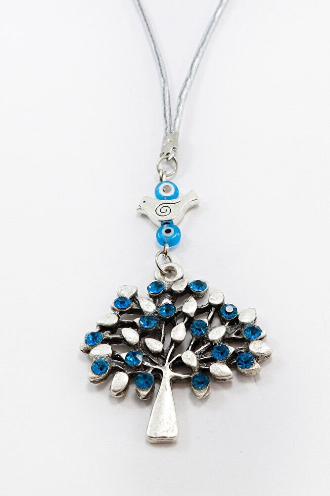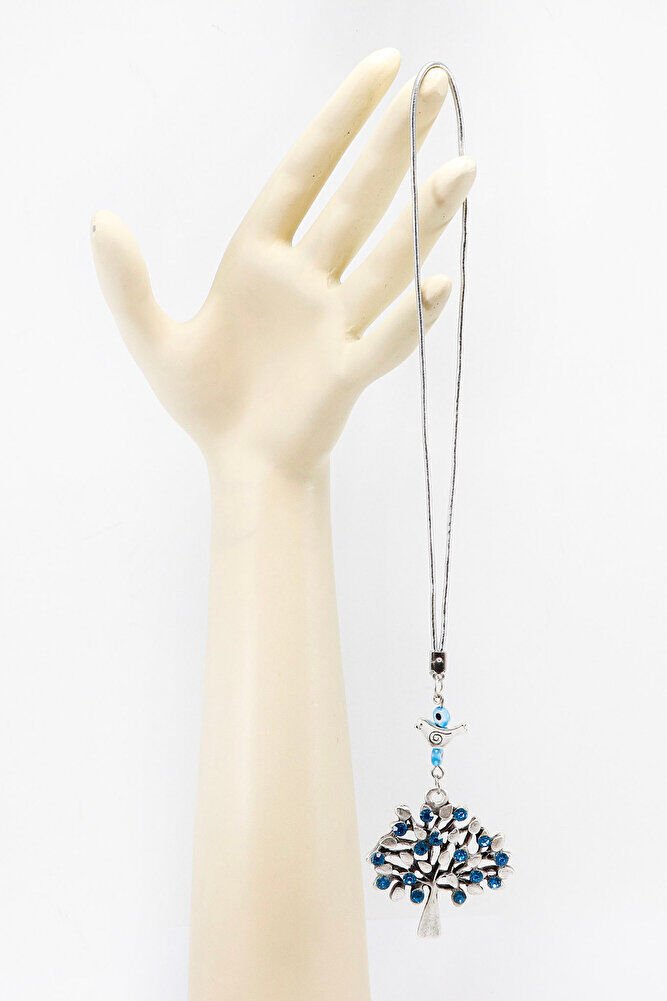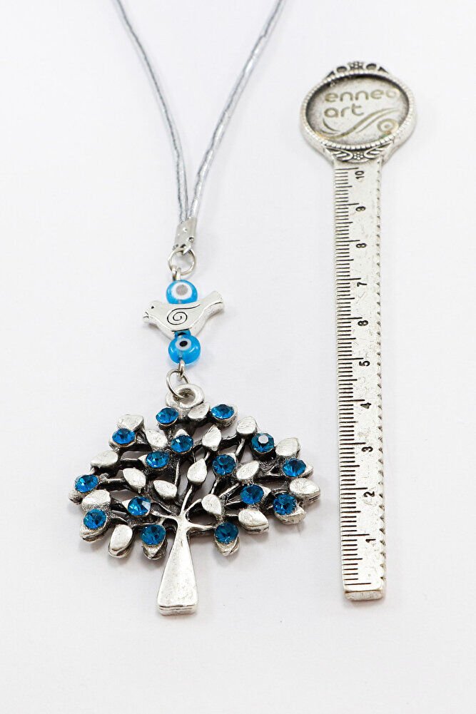 Kuşlu Turkuaz Parlak Taşlı Eskitme Ağaç Figürlü Araba Dikiz Ayna Süsü, Araba Hediyesi