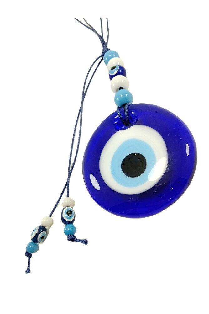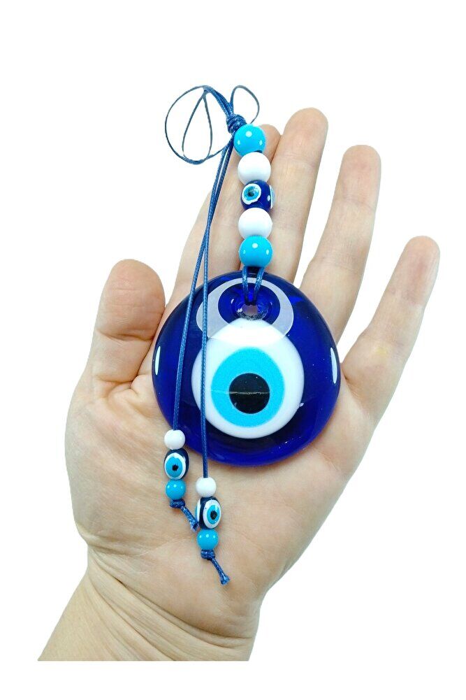 Ürün el yapımıdır. ; Büyük beyaz boncuklar 5-5,5 cm boyutundadır. ; El yapımı olduğu için ufak farklılık ve düzensizlikler olasıdır. ; Bu el yapımı cam nazar boncukları ile kendinizi ve sevdiklerinizi negatif enerjiden koruyun. ; Türk kültüründe geleneksel olarak"nazar boncuğu" olarak bilinen bu güçlü sembolün kötülükleri savuşturduğuna ve iyi şans getirdiğine inanılır. ; Her cam boncuk yetenekli zanaatkarlar tarafından titizlikle işlenir ve bu her parçayı benzersiz kılar. ; Nazar boncuğunu, müşterilerimize duvar süsü, anahtarlık, araba aksesuarı, kapı süsü, magnet gibi farklı formatlarda sunuyoruz.Pozitif enerji getirmek ve nazardan korumak için evinize, arabanıza veya ofisinize asın. ; Nazar tılsımının dünyadaki çeşitli kültürlerde farklı isimleri vardır. ; Arapça'da "aynal-hasud" veya "haset gözü", Yunanca'da "mati" olarak bilinir. ; Adı ne olursa olsun, bu koruyucu nazar boncuğunun gücüne olan inanç evrenseldir.;