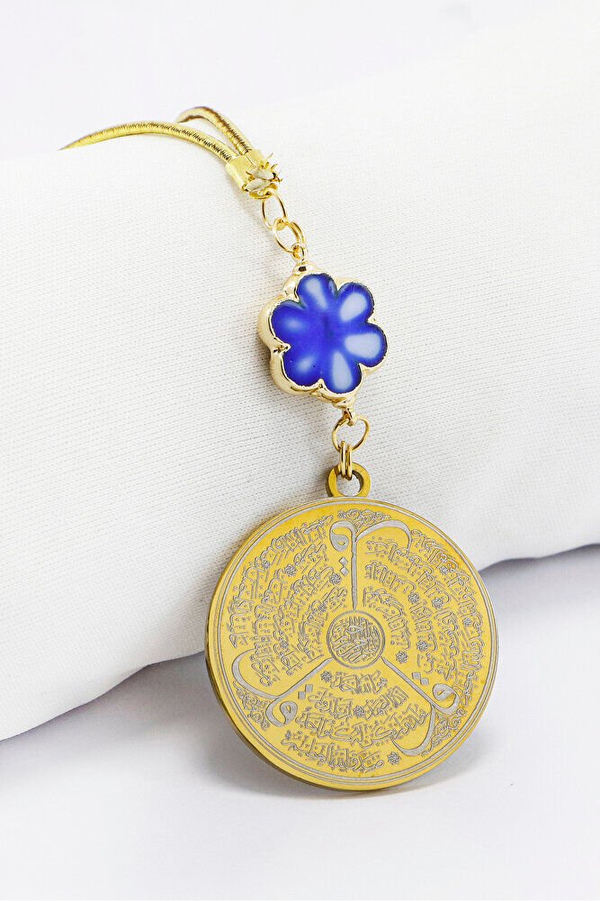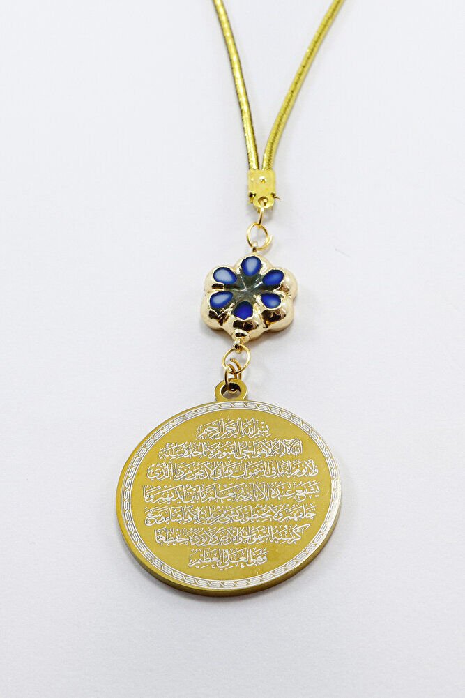 TÜM ÜRÜN FOTOGRAFLARI ENNEA ART FİRMASINA AİTTİR VE ÖZGÜN ÇALIŞMALARDIR.; İZİNSİZ KULLANIM, KOPYALAMA VEYA DAĞITIM KESİNLİKLE YASAKTIR.; GEREKLİ DURUMLARDA YASAL İŞLEM BAŞLATILACAKTIR.; Ürün el yapımıdır el yapımı olduğu için ufak farklılık ve düzensizlikler olasıdır.; Plaka gold renkli paslanmaz çeliktir.; Çelik plaka 3,5 cm ölçülerindedir.; Plaka çift taraflıdır.; Çiçek figürü çift taraflıdır.; Bir yüzünde Ayetel Kürsi diğer yüzünde ise Felak Nas İhlas bulunmaktadır.; Ayetel Kürsi, Bakara Suresi'nin 255. ayetidir ve İslam inancında çok önemli bir yere sahiptir.; Bu ayet, Allah’ın kudretini, egemenliğini ve her şeyi bilen, her şeyin sahibi olan Yüce Varlık olduğunu vurgular.; Ayet, Allah'ın her şeyin üzerinde olduğunu, hiçbir gücün O’nun izni olmadan hareket edemeyeceğini belirtir.; İnanılır kabul edilen bir başka önemli husus da, bu ayetin kişiyi kötülüklerden koruyacağına, huzur ve güven vereceğine inanılmasıdır.; Müslümanlar, Ayetel Kürsi'yi sıkça okur ve çeşitli durumlarda korunma, dua ve huzur arayışı için kullanırlar.; Bu nedenle, hem manevi hem de koruyucu bir anlam taşır.; Felak, Nas ve İhlas sureleri, İslam inancında korunma ve manevi güç sağlamak için okunan önemli dualardır.; İnanılır kabul edilir ki, Felak ve Nas sureleri, özellikle kötü gözlerden, nazardan ve şeytani etkilerden korunmak için okunur.; Felak suresi, karanlık güçlere karşı koruma sağlarken, Nas suresi de olumsuz düşünceler ve zararlı enerjilerden korunmayı sağlar.; İhlas suresi ise, Allah’ın birliğini ve sınırsız gücünü ifade eder, bu sureye inanılır ki, kişi manevi huzur ve Allah’ın koruması altında olur.; Bu sureler, sıkça güven ve huzur arayışında olanlar için okunur ve ruhsal dengeyi sağlamak isteyenlere büyük fayda sağladığına inanılır.;