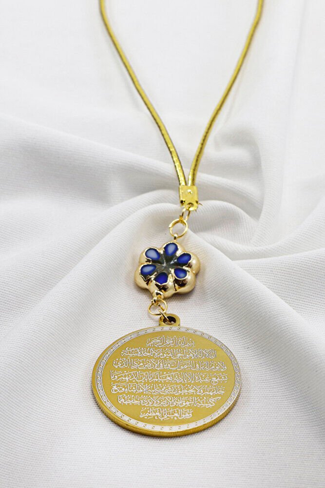 Lacivert Çerçeveli Çiçek Ayetel Kürsi Felak Nas İhlas Araba Dikiz Ayna Süsü, Yeni Araba Hediyesi