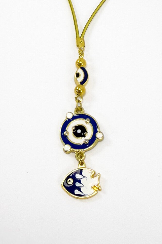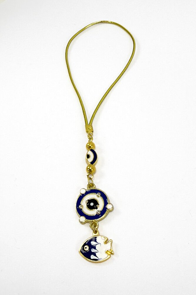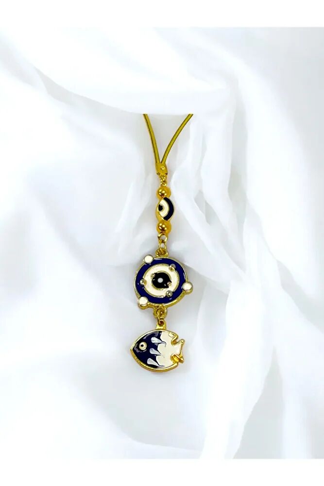 Lacivert Çerçeveli Nazar Gezegenli Metal Balık Araba Dikiz Ayna Süsü, Yeni Araba Hediyesi