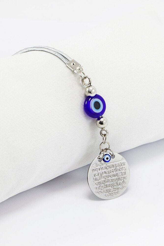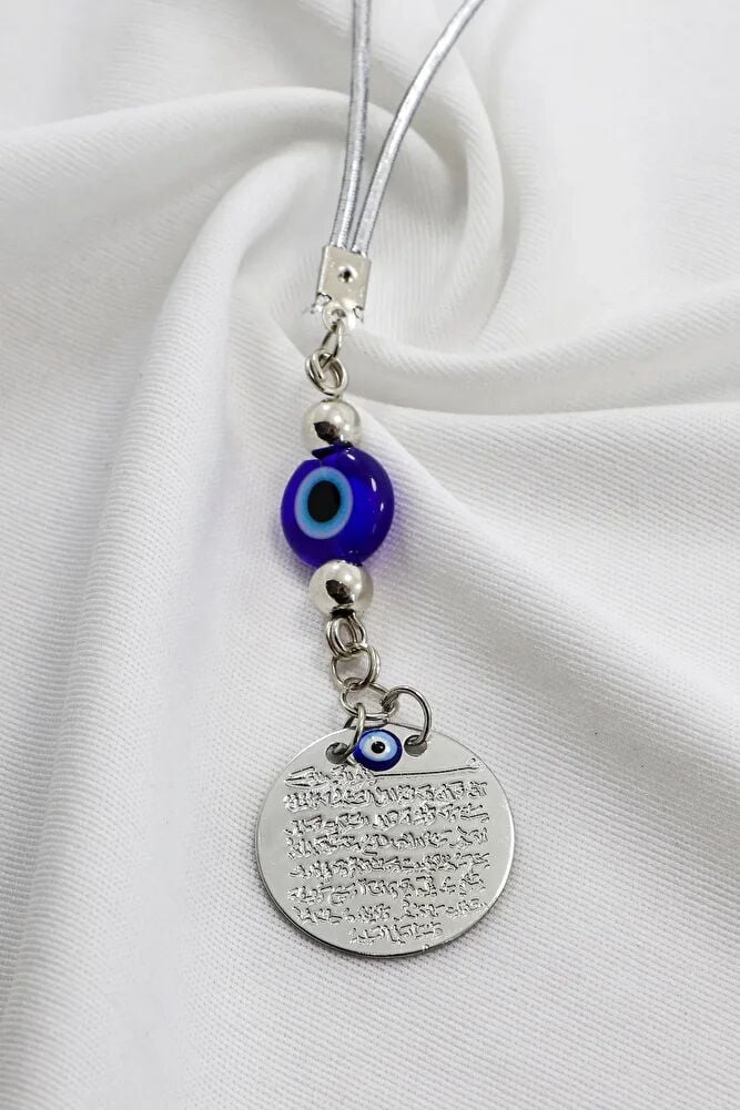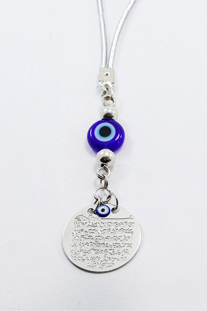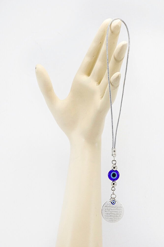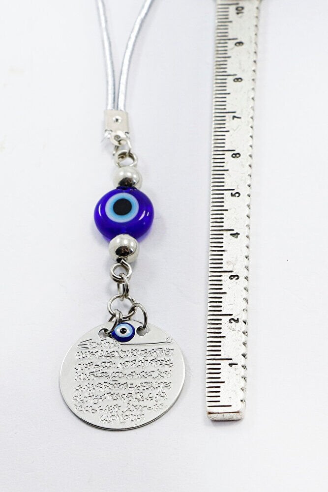 Lacivert El Yapımı Cam Nazar Boncuklu Metal Ayetel Kürsi Araba Dikiz Ayna Süsü, Araba Hediyesi
