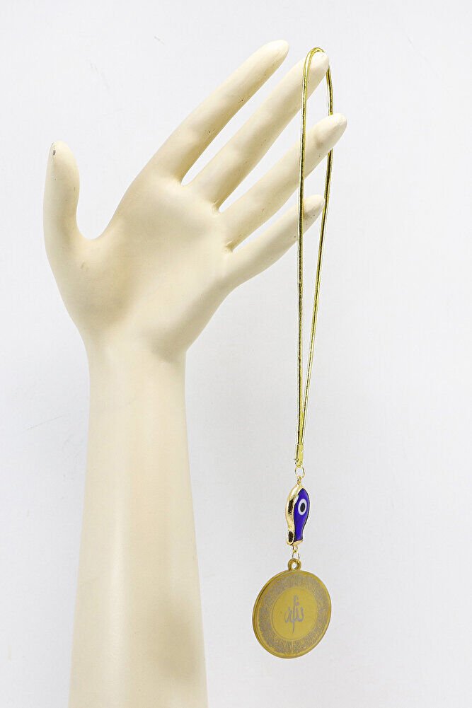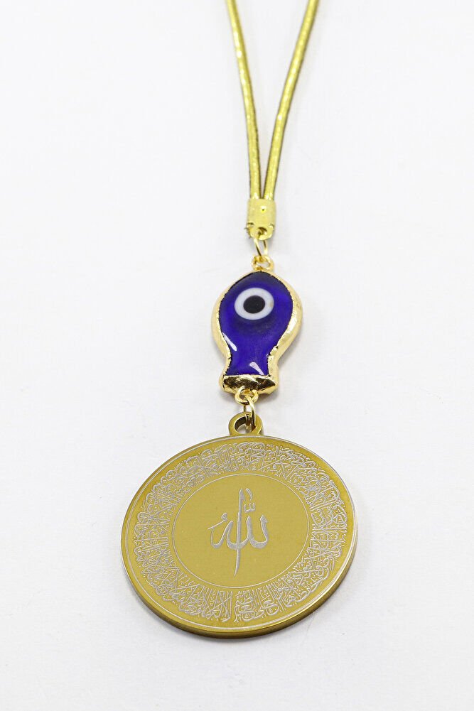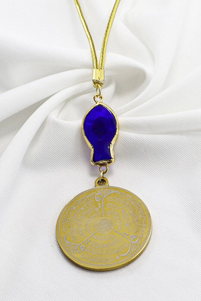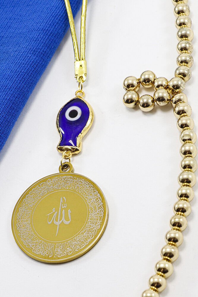 Lacivert Nazar Balıklı Gold Çelik Hat Ayetel Kürsi Felak Nas İhlas Dikiz Ayna Süsü (3,5)