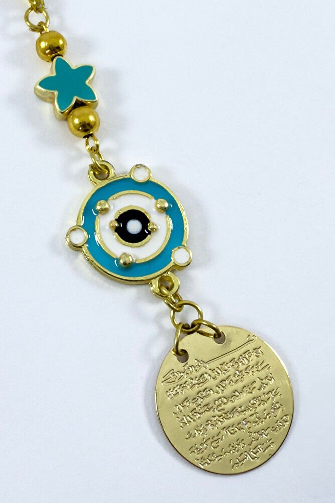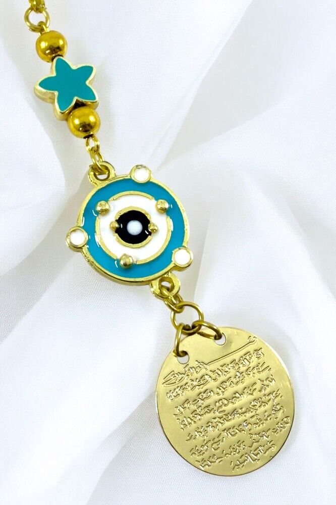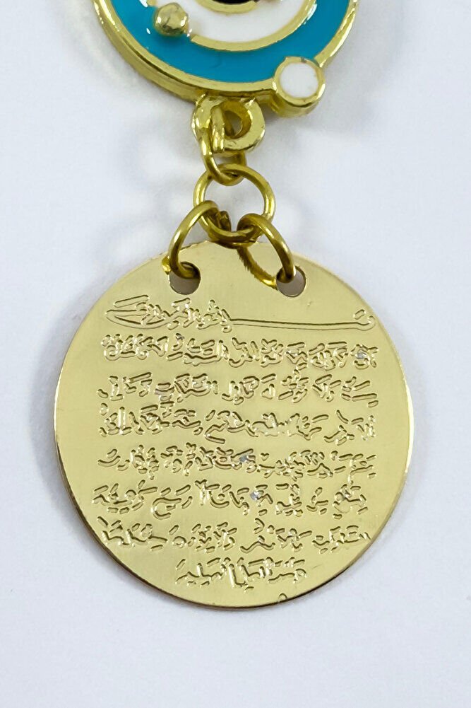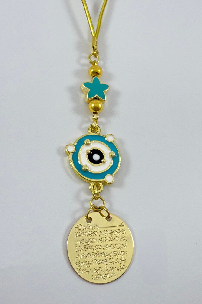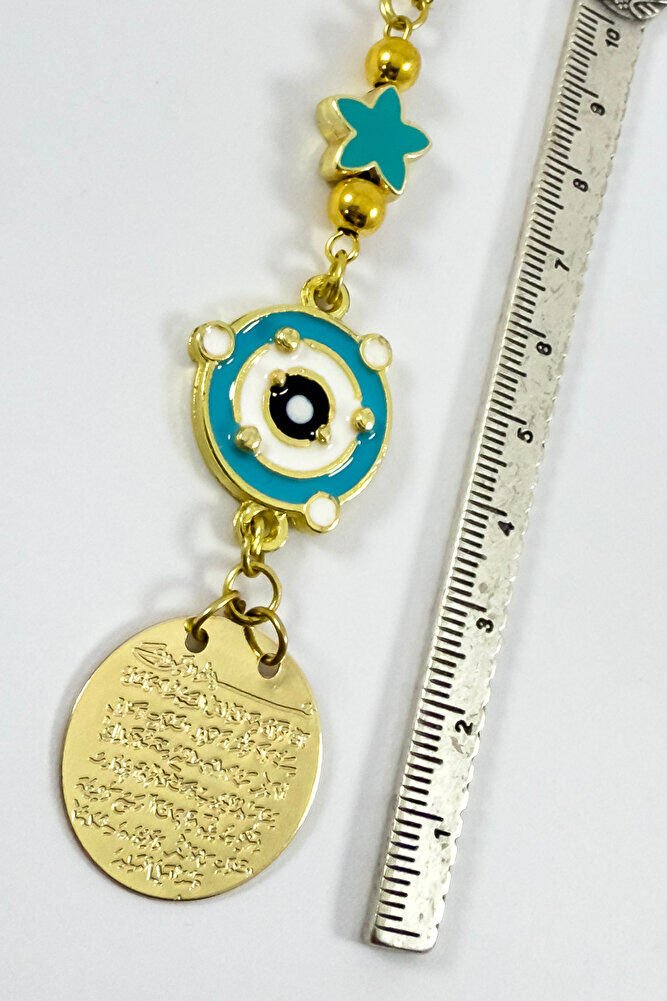 Ürün el yapımıdır.; El yapımı olduğu için ufak farklılık ve düzensizlikler olasıdır.; İp elastiktir, lastikli yapısı sayesinde her model araca kolaylıkla takılabilmektedir.; Ürün altın renkli metaldir.; Ürün tek taraflıdır.; Ayetel Kürsi de tek taraflıdır ve 2 cm ölçülerindedir.; Ayetel Kürsi, Bakara Suresi'nin 255. ayetidir ve İslam inancında çok önemli bir yere sahiptir.; Bu ayet, Allah ın kudretini, egemenliğini ve her şeyi bilen, her şeyin sahibi olan Yüce Varlık olduğunu vurgular.; Ayet, Allah'ın her şeyin üzerinde olduğunu, hiçbir gücün O nun izni olmadan hareket edemeyeceğini belirtir.; İnanılır kabul edilen bir başka önemli husus da, bu ayetin kişiyi kötülüklerden koruyacağına, huzur ve güven vereceğine inanılmasıdır.; Müslümanlar, Ayetel Kürsi'yi sıkça okur ve çeşitli durumlarda korunma, dua ve huzur arayışı için kullanırlar.; Bu nedenle, hem manevi hem de koruyucu bir anlam taşır.;