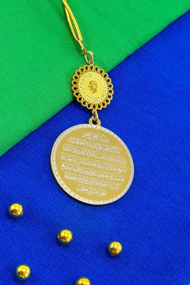 M. Kemal Atatürk Plakalı Komple Paslanmaz Çelik Ayetel Kürsi Felak Nas İhlas Araba Dikiz Ayna Süsü