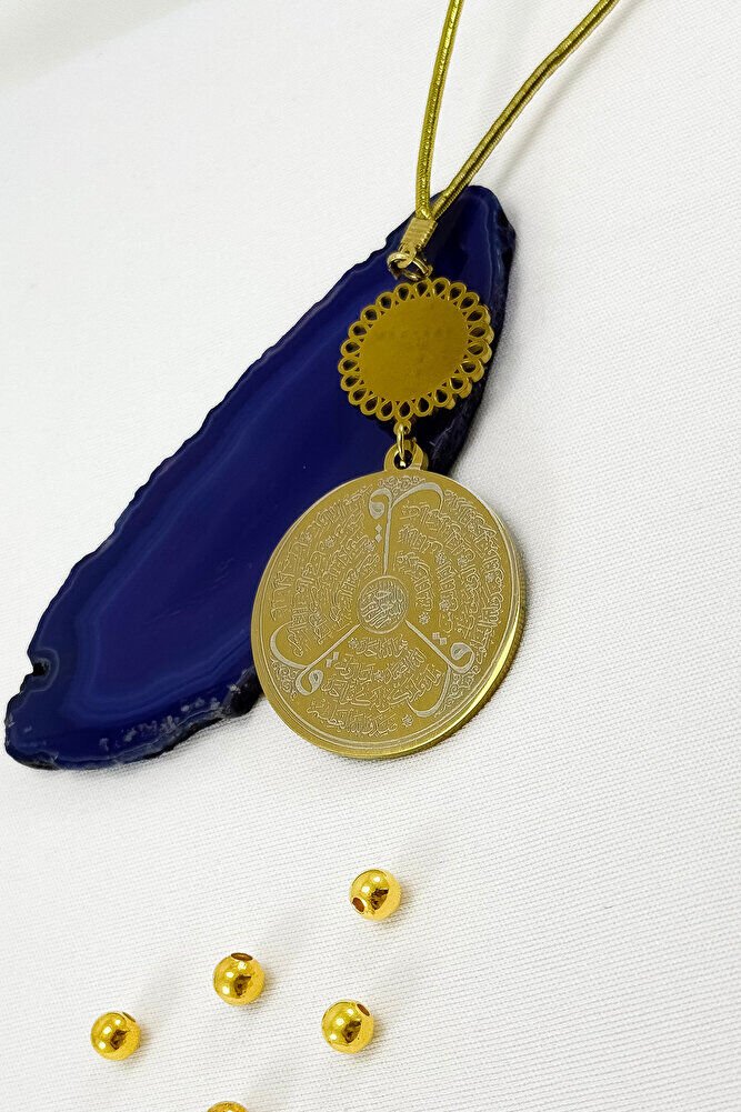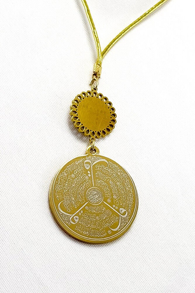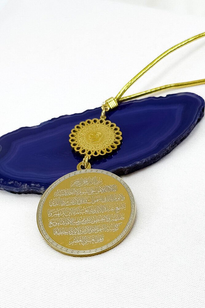 Dualar lazer kazıma tekniği ile kalıcı bir şekilde kazınmaktadır.; Atatürklü Palaka paslanmaz çeliktir ve tek taraflıdır.; Ayetel kürsi yazılı yüzünde bulunmaktadır.; Ürün el yapımıdır el yapımı olduğu için ufak farklılık ve düzensizlikler olasıdır.; İp elastiktir.; Elastik olduğu için her modele rahatlıkla takılabilmektedir.; Plaka altın renkli paslanmaz çeliktir.; Ürün üzerinde bulunan metaller komple paslanmaz çeliktir.; Çelik plaka 3,5 cm ölçülerindedir.; Plaka çift taraflıdır.; Bir yüzünde Ayetel Kürsi diğer yüzünde ise Felak Nas İhlas bulunmaktadır.; Felak, Nas ve İhlas sureleri, İslam inancında korunma ve manevi güç sağlamak için okunan önemli dualardır.; İnanılır kabul edilir ki, Felak ve Nas sureleri, özellikle kötü gözlerden, nazardan ve şeytani etkilerden korunmak için okunur.; Felak suresi, karanlık güçlere karşı koruma sağlarken, Nas suresi de olumsuz düşünceler ve zararlı enerjilerden korunmayı sağlar.; İhlas suresi ise, Allah ın birliğini ve sınırsız gücünü ifade eder, bu sureye inanılır ki, kişi manevi huzur ve Allah ın koruması altında olur.; Bu sureler, sıkça güven ve huzur arayışında olanlar için okunur ve ruhsal dengeyi sağlamak isteyenlere büyük fayda sağladığına inanılır.; Ayetel Kürsi, İslam inancında en güçlü ve koruyucu dualardan biri olarak kabul edilir.; Ayetel Kürsi, Allah ın büyüklüğünü ve egemenliğini ifade eden bir ayet olup, koruma ve manevi güç sağlamak amacıyla sıkça okunur.; Bu ayet, göklerde ve yerin her şeyinin Allah a ait olduğunu vurgular ve şeytani etkilerden korunma sağlar.; Özellikle gece yatmadan önce okunmasının, güvende olma, zararlı enerjilerden korunma ve ruhsal huzur sağlama açısından büyük fayda verdiğine inanılır.; Aynı zamanda, Allah ın her şeyi bildiği ve her şeyin O na bağlı olduğu inancı ile kişiye manevi rahatlık ve güç verir.;