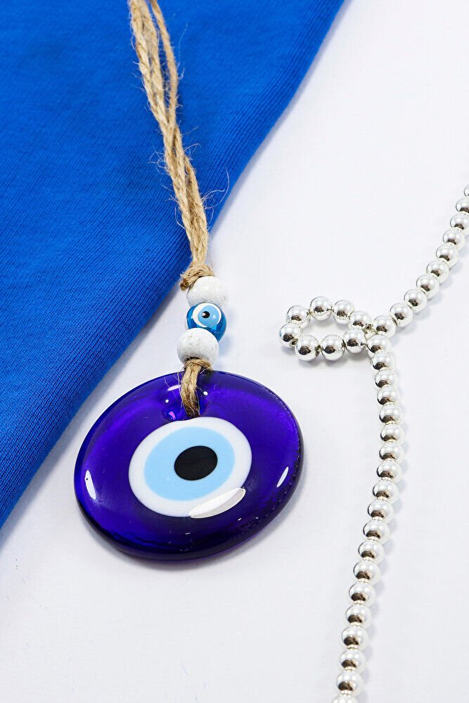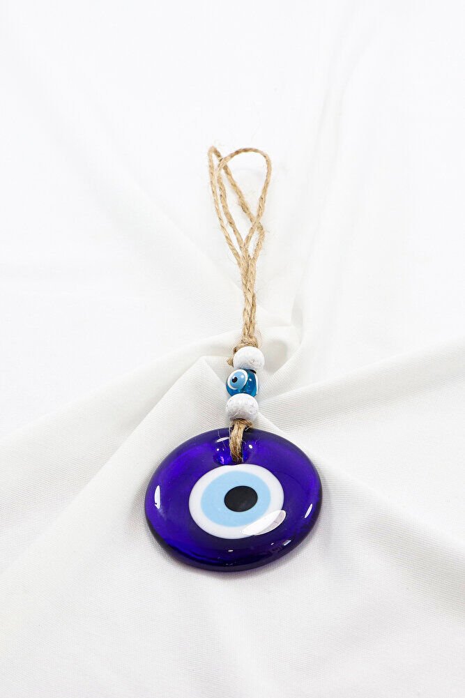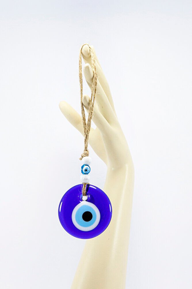 Mavi Cam Nazar Boncuğu 5cm anahtarlık, Jüt İpli Duvar Süsü